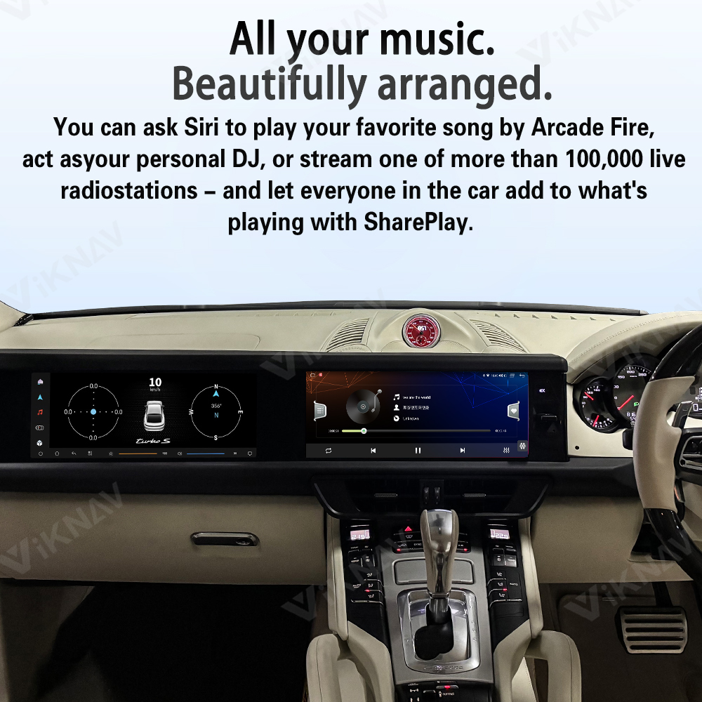 Android System 12.3 Inch+12.3 Inch Car Radio For Porsche Cayenne 2010-2017 Auto Stereo Wireless Carplay GPS Navigation Multimedia Player 128GB RHD Dual Touch Screen (Beige)
