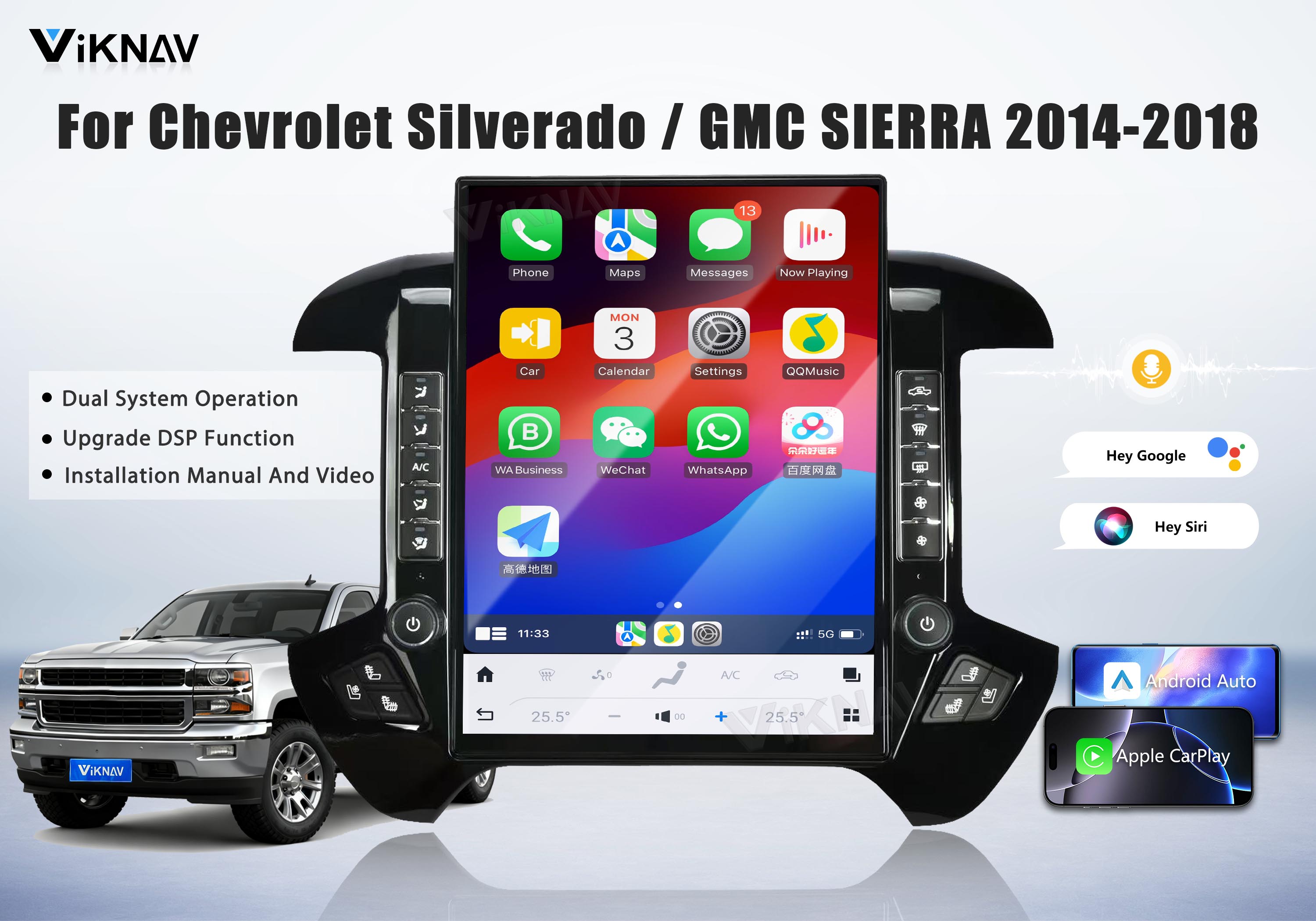 15.6 inch Latest Android Tesla Car Radio Vertical Screen GPS For GMC Sierra Chevrolet Silverado 2014 2015 2016 2017 2018