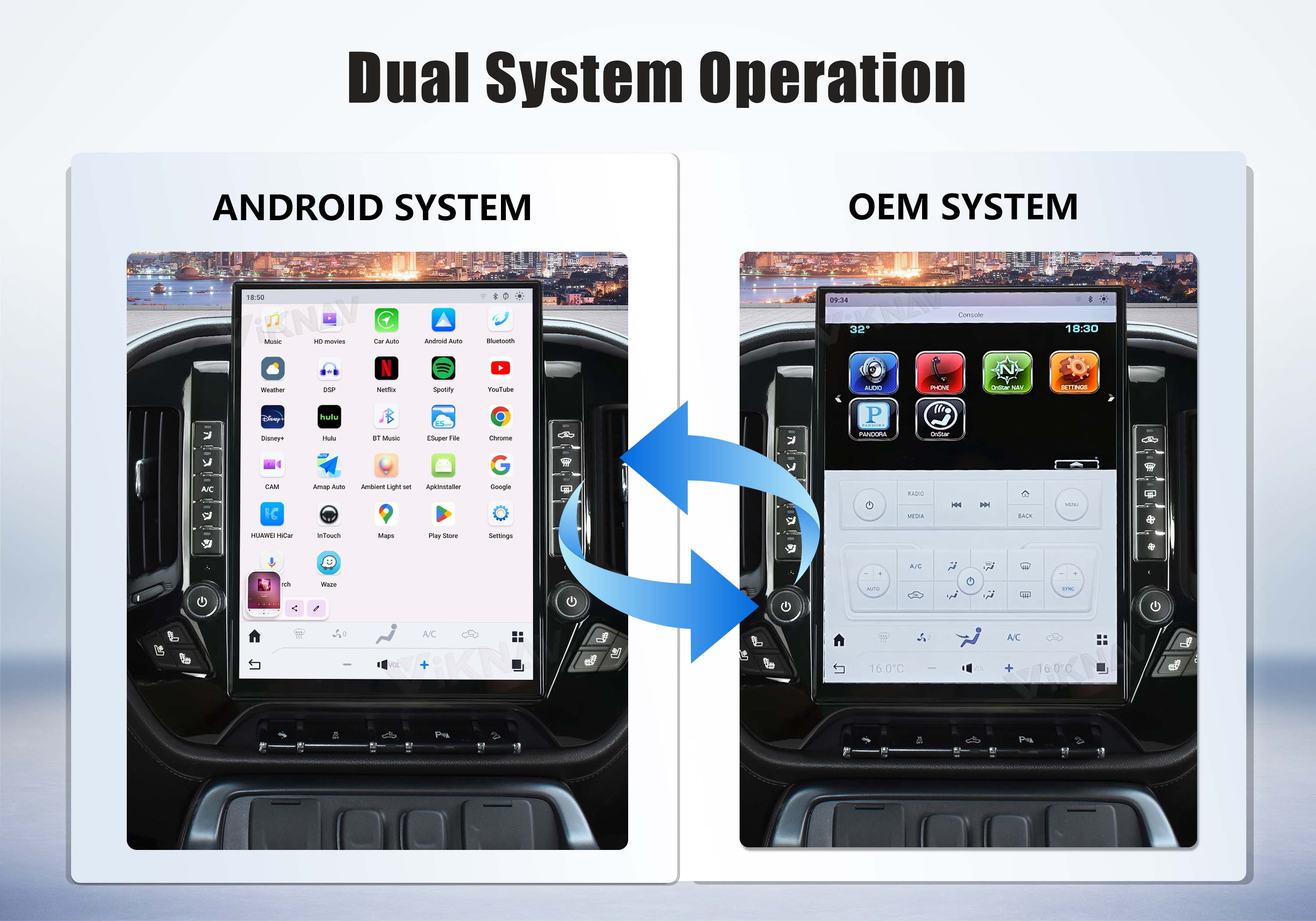 🚗Dual System Operation: After Install our this radio for Chevrolet Silverado to retain the original car system, all the original car functions can be used normally. The original car BOSE system and B&O system can be supported. The original car camera can be used.and it will also can use android system.