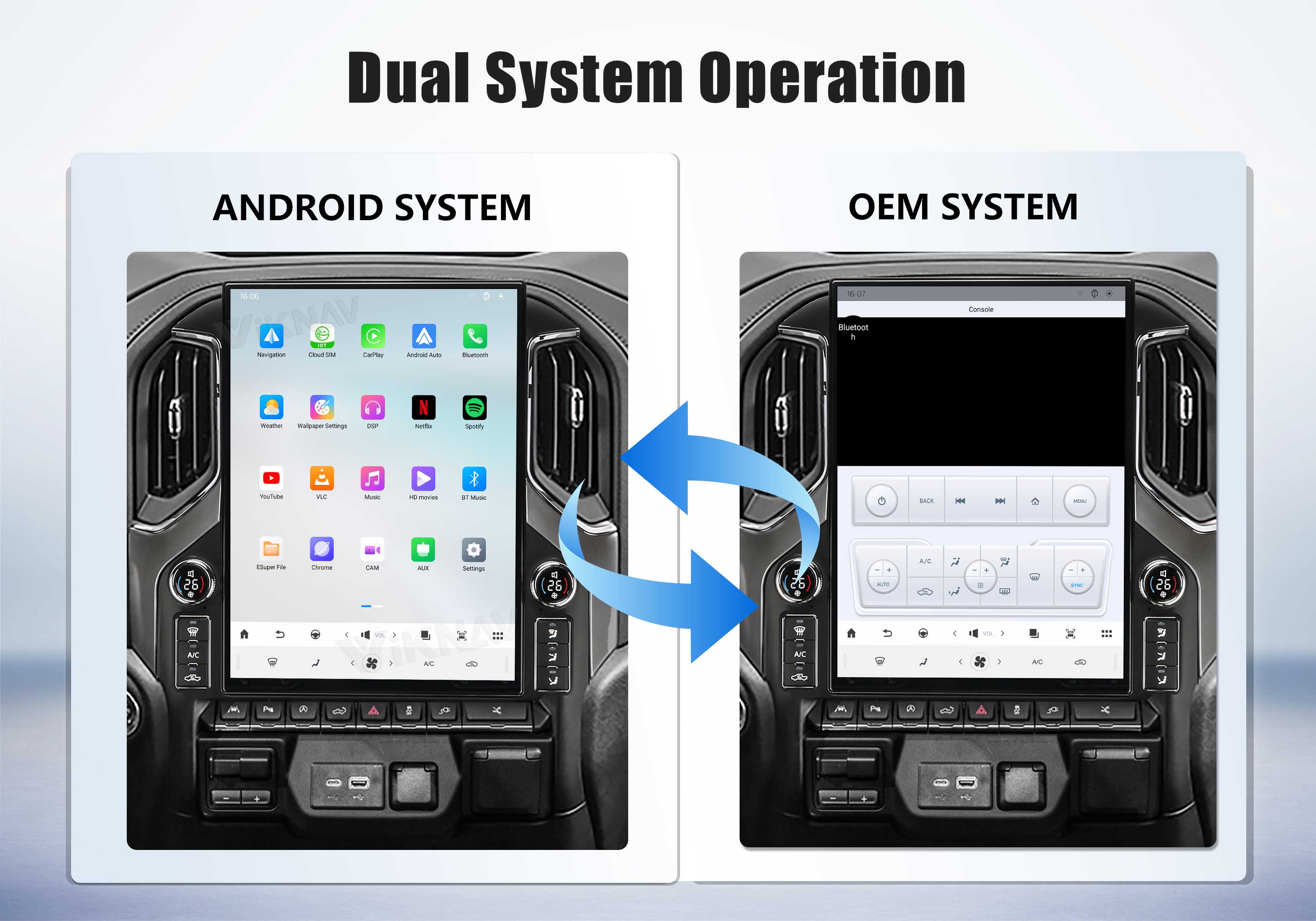 🚗Dual System Operation: After Install our this radio for Chevrolet Silverado to retain the original car system, all the original car functions can be used normally. The original car BOSE system and B&O system can be supported. The original car camera can be used.and it will also can use android system.