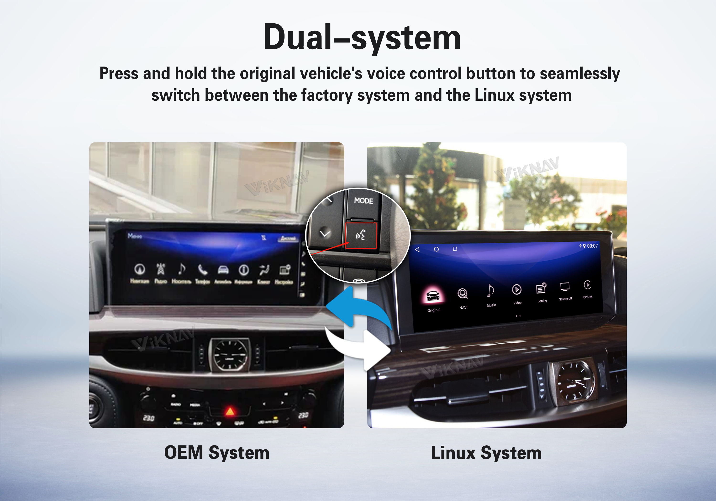 The VIKNAV Interface brings CarPlay and Android Auto to your car’s display