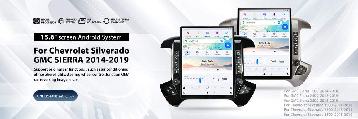 Viknav 15.6 Inch Larger Screen Car Radio For Chevrolet Silverado / GMC SIERRA 2014-2018 Android Head Unit Wirless Carplay GPS Navigation Player Autoradio (Silvery 128GB)