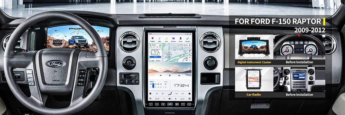 Viknav 14.4 Inch Car Radio Android and Digital Cluster Dashboard Panel Speedometer For Ford F150 2009-2012 Stereo Wireless Carplay Android Auto Touch Screen GPS Navigation Multimedia Player