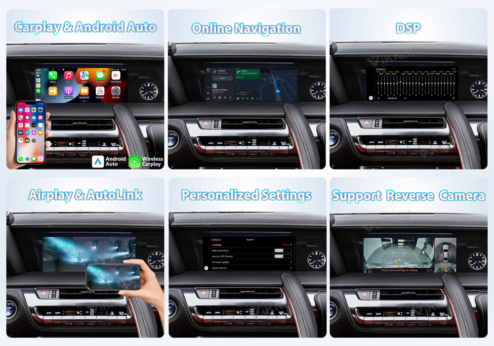 Hey there! 👋 If you own a 2018-2020 Lexus LC500, our Linux Interface Box is a game-changer for your ride—it adds wireless CarPlay, Android Auto, and GPS to your original car radio screen, lets you switch seamlessly between OEM and Linux modes with a long press, and keeps all your factory features like steering wheel buttons and rear camera fully functional. You even get to pick AUX or Bluetooth for audio, blending new tech with your car’s original setup flawlessly.