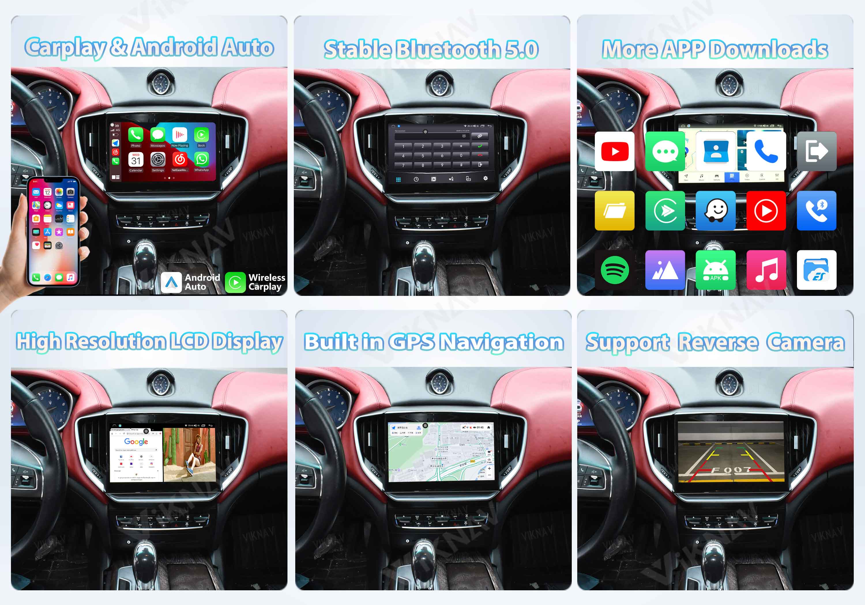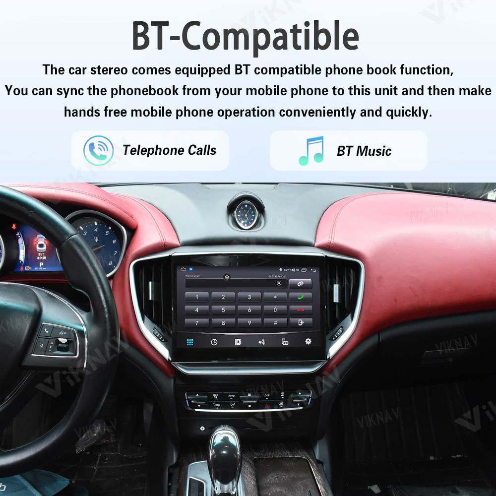 ⭐Support Wireless Apple Carplay & Android Auto.The car stereo with wireless CarPlay is the easiest way to add a large screen and new technology to your Maserati Ghibli. After connecting your smartphone via the charging cable or Bluetooth, you get your music, driving directions, and phone calls all controlled from the 10.4 inch touchscreen. Keep driving safely.