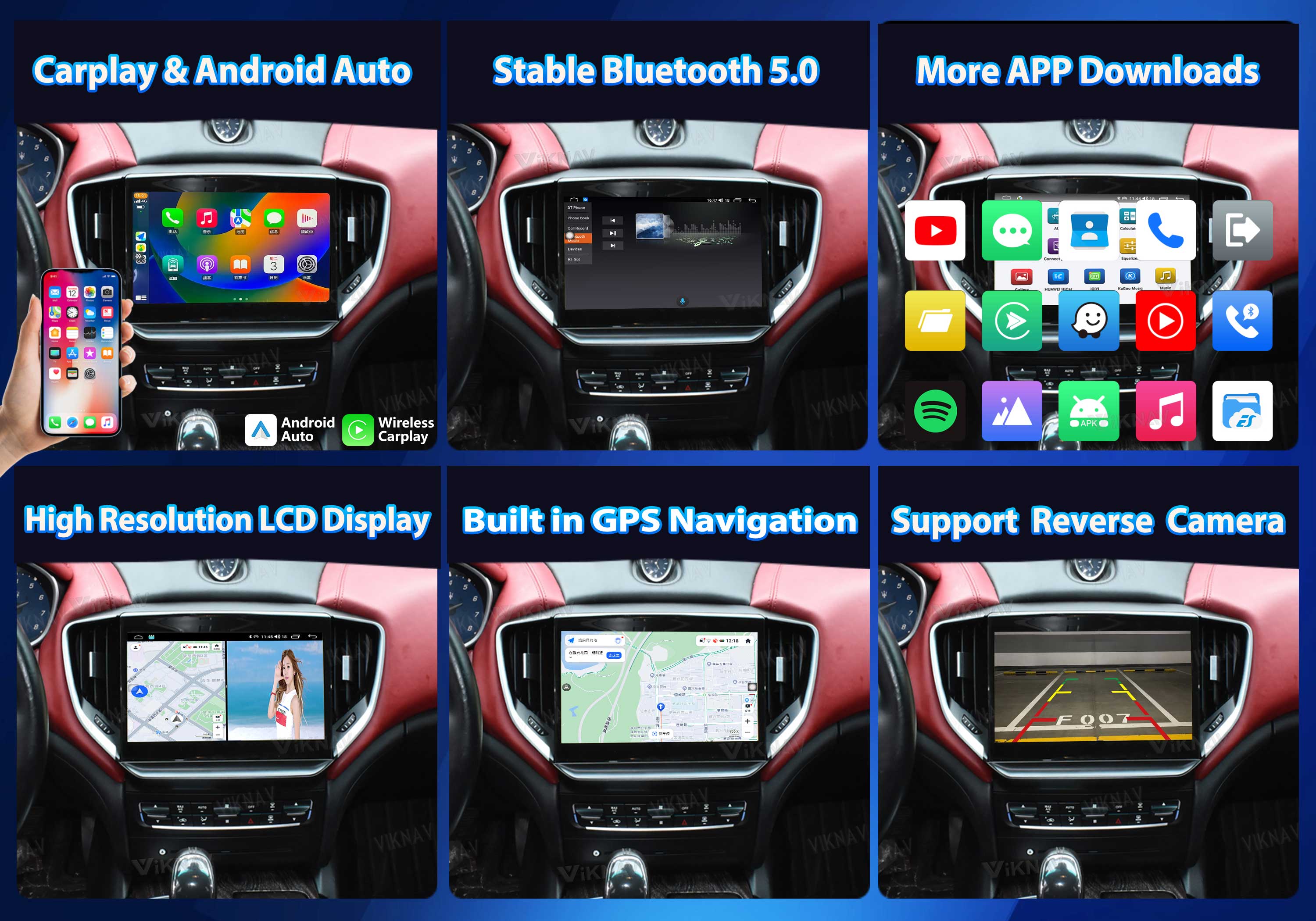Android car player can mirror link with android phone by USD cable ,or mirror link by phone' s hotspot . Our android car stereo support with apple carplay has 2 USB ports.One USB port playback, the other USB has a 2A fast charging function, which is convenient for fast charging the mobile phone. Via the USB cable connection, the in-dash Head Unit Car Radio Receivers will display the content from your cellphone screen synchronously,you are able to access high quality pictures, online gps navigation, messages, video player and music together in the your car.