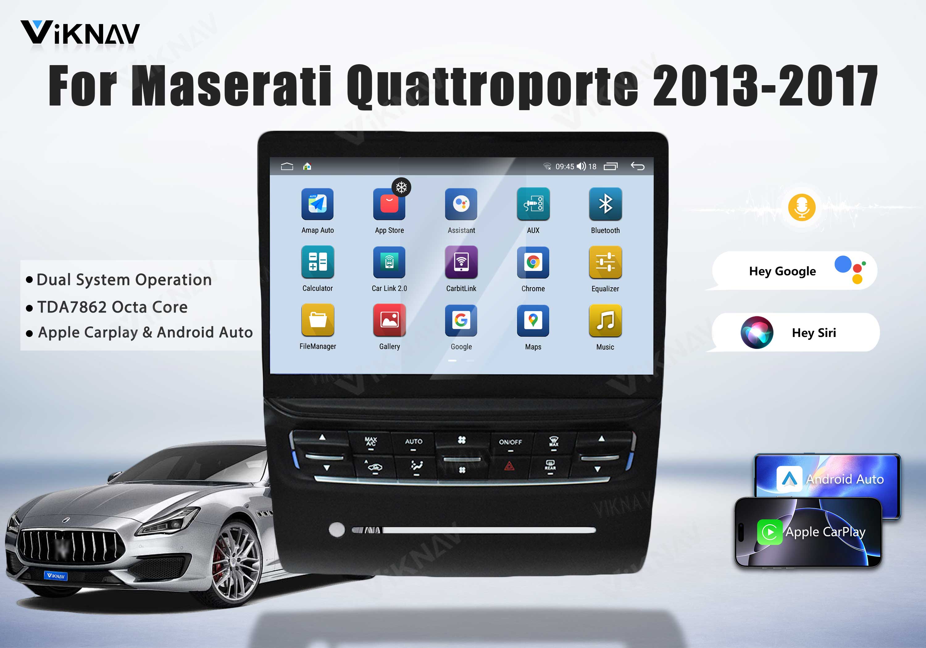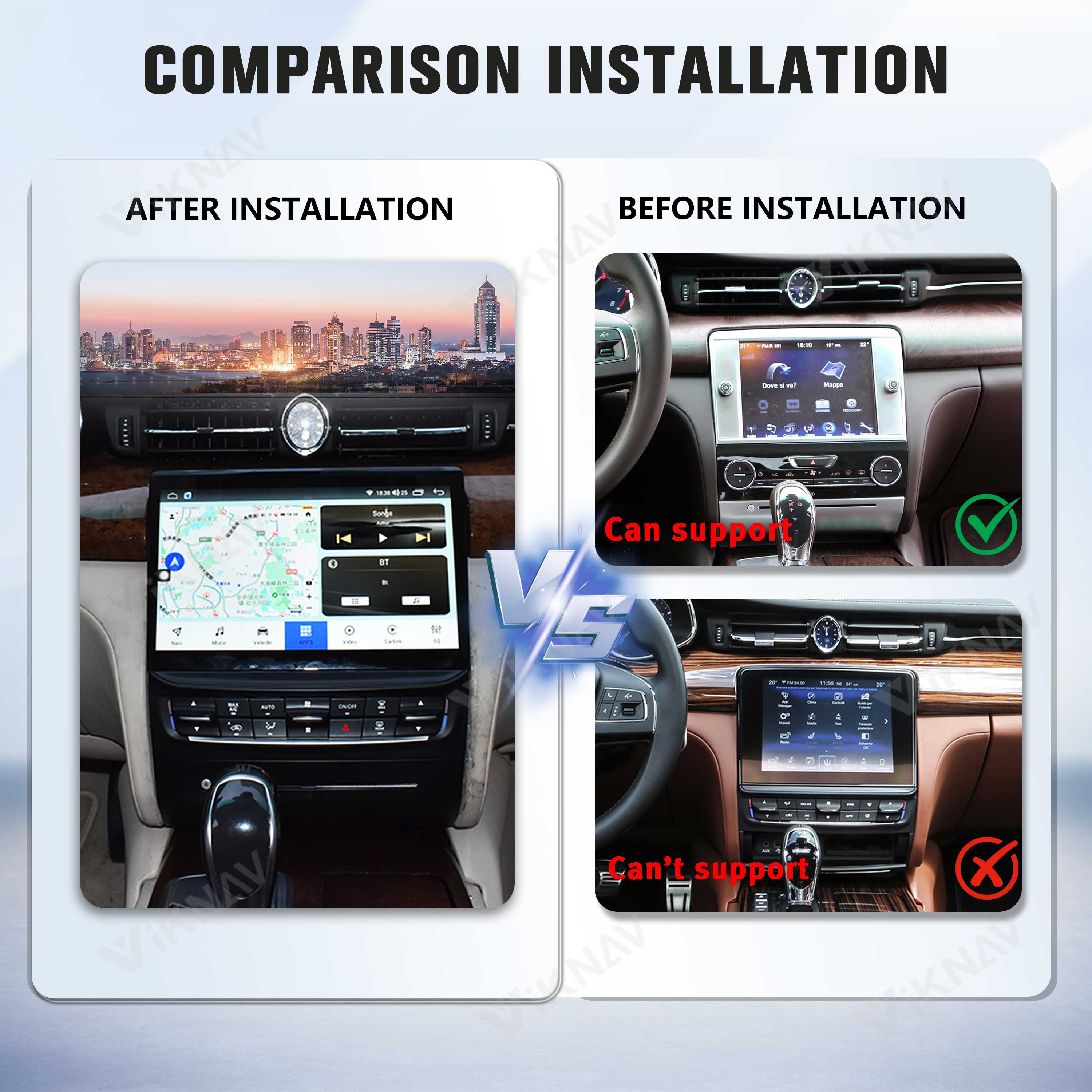 ⭐Support Wireless Apple Carplay & Android Auto.The car stereo with wireless CarPlay is the easiest way to add a large screen and new technology to your Maserati Quattroporte. After connecting your smartphone via the charging cable or Bluetooth, you get your music, driving directions, and phone calls all controlled from the 10.4 inch touchscreen. Keep driving safely.