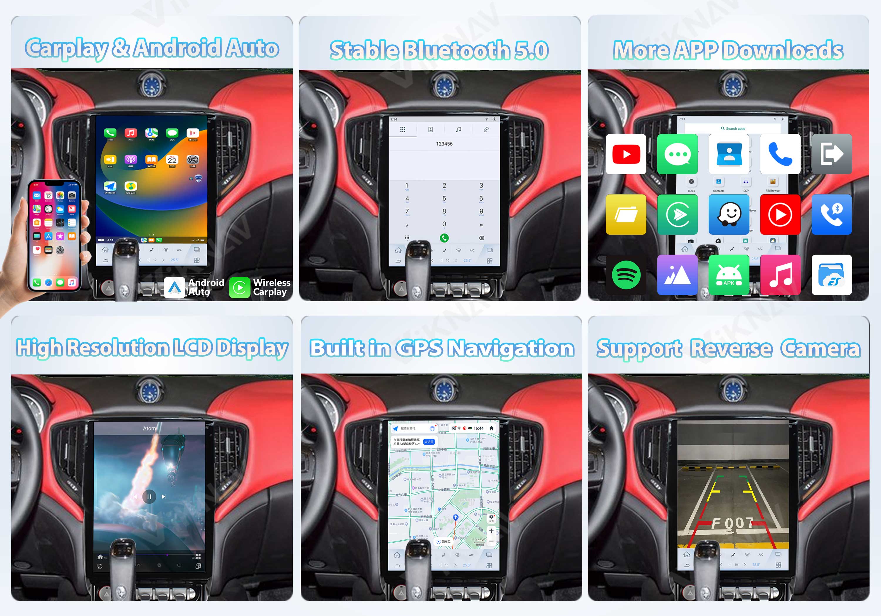 ⭐Support Wireless Apple Carplay & Android Auto.The car stereo with wireless CarPlay is the easiest way to add a large screen and new technology to your Maserati Ghibli. After connecting your smartphone via the charging cable or Bluetooth, you get your music, driving directions, and phone calls all controlled from the 10.4 inch touchscreen. Keep driving safely.