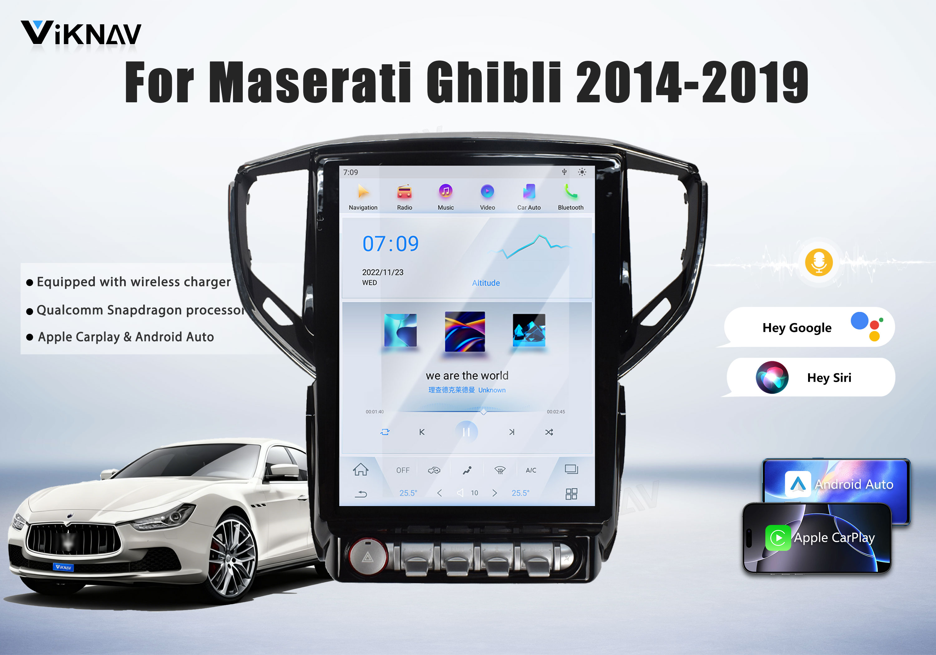 🟠This for maserati ghibli android replacement is equipped with wireless charger. There are two sets of cables for you to choose, which can be installed according to your car.