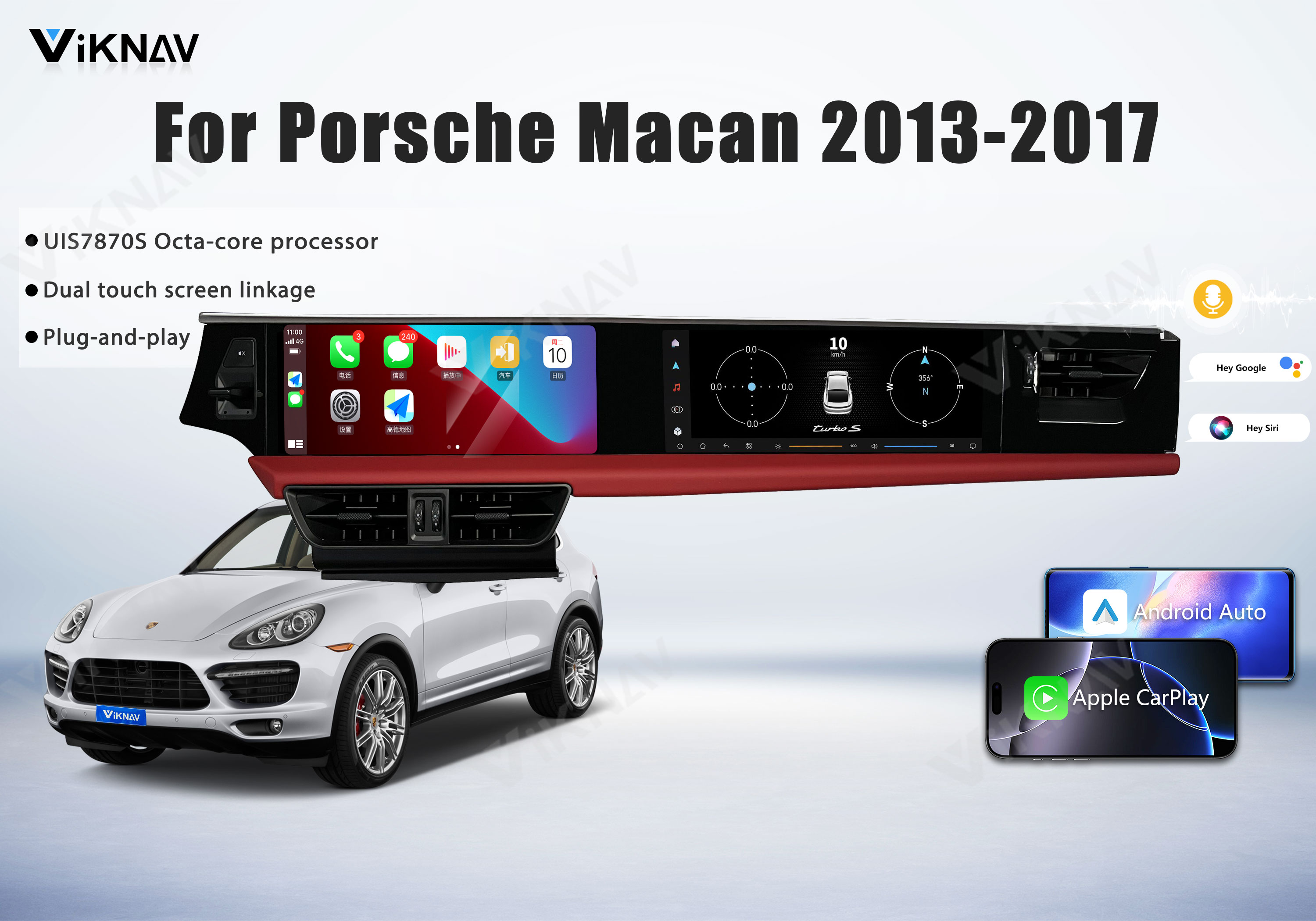 💜The android car radio fit for Porsche Macan 2013 2014 2015 2016 2017(PCM 3.1/PCM 4.0). Newest Android System Dual 12.3-inch high-definition touch screen,the latest UIS7870SC processor,high resolution 2400 * 896, RAM 6GB+ROM 128GB large storage.