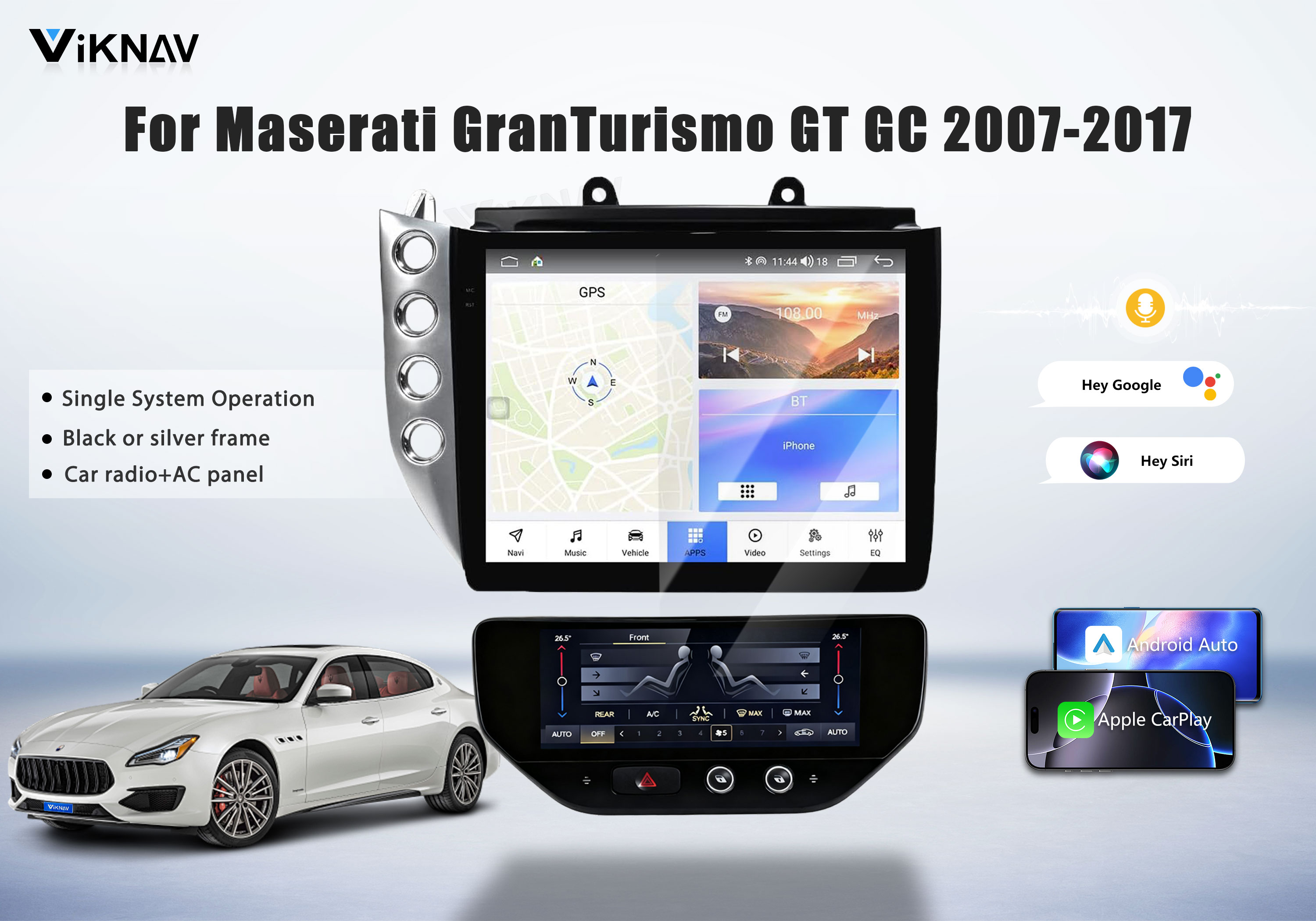 Support Wireless Apple Carplay & Android Auto.The car stereo with wireless CarPlay is the easiest way to add a large screen and new technology to your Maserati GT. After connecting your smartphone via the charging cable or Bluetooth, you get your music, driving directions, and phone calls all controlled from the 10 inch touchscreen. Keep driving safely.