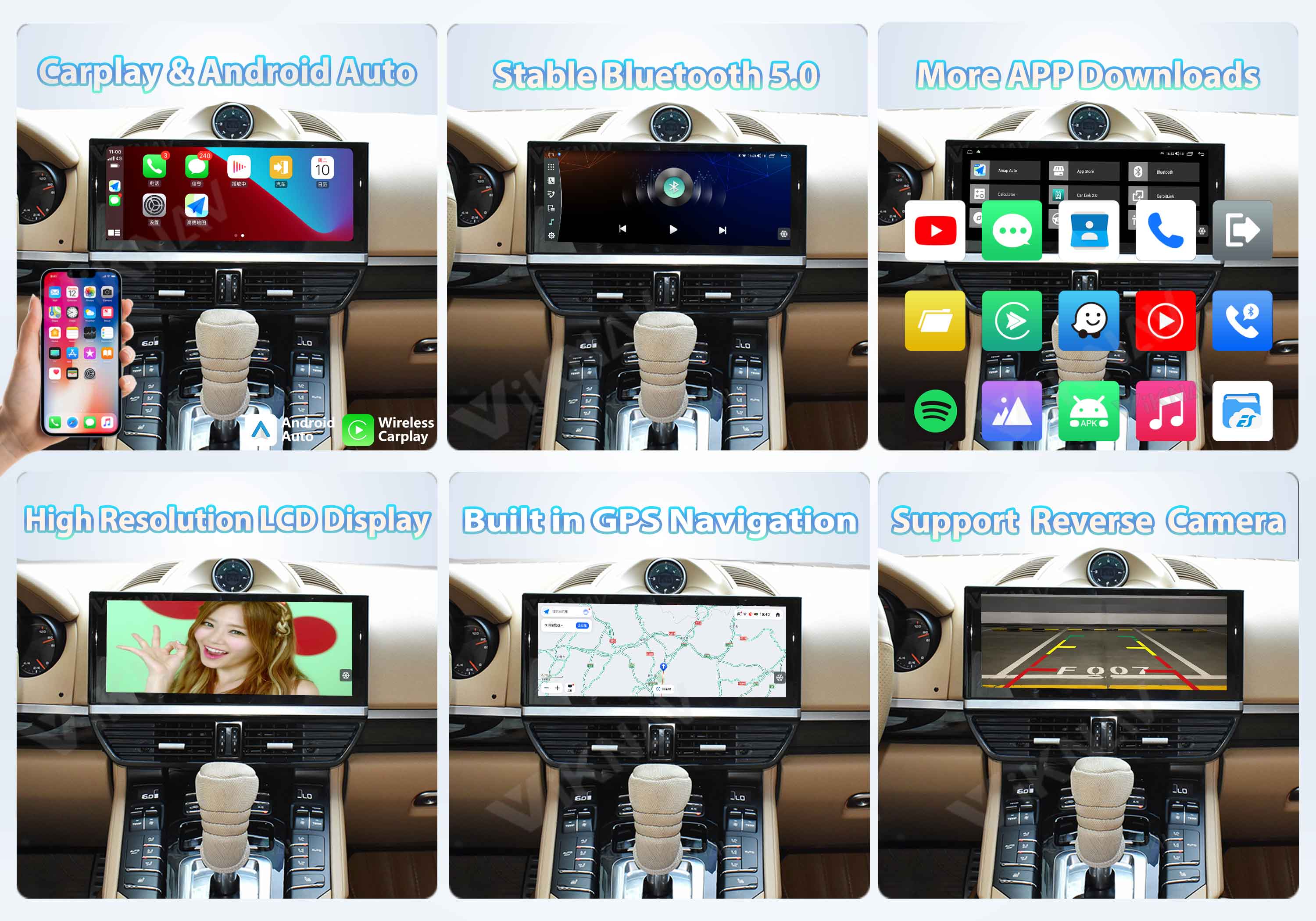 💙This upgraded Porsche Cayenne stereo built-in wireless and wired Apple CarPlay, and built-in USB connection to Android Auto; Support voice control, make hands-free calls, send/receive SMS, and listen to music/podcasts in CarPlay or Android Auto while you focus on driving.