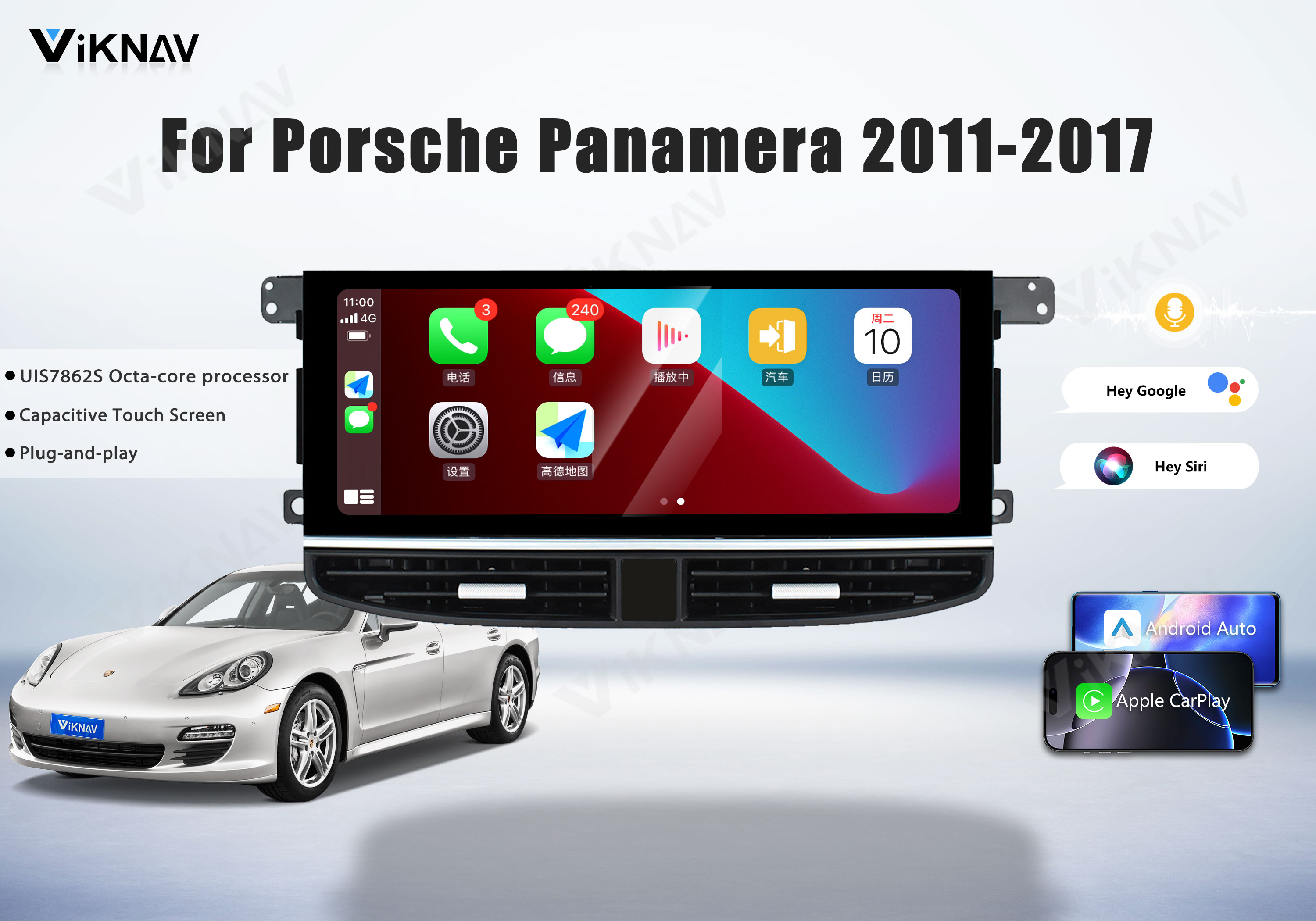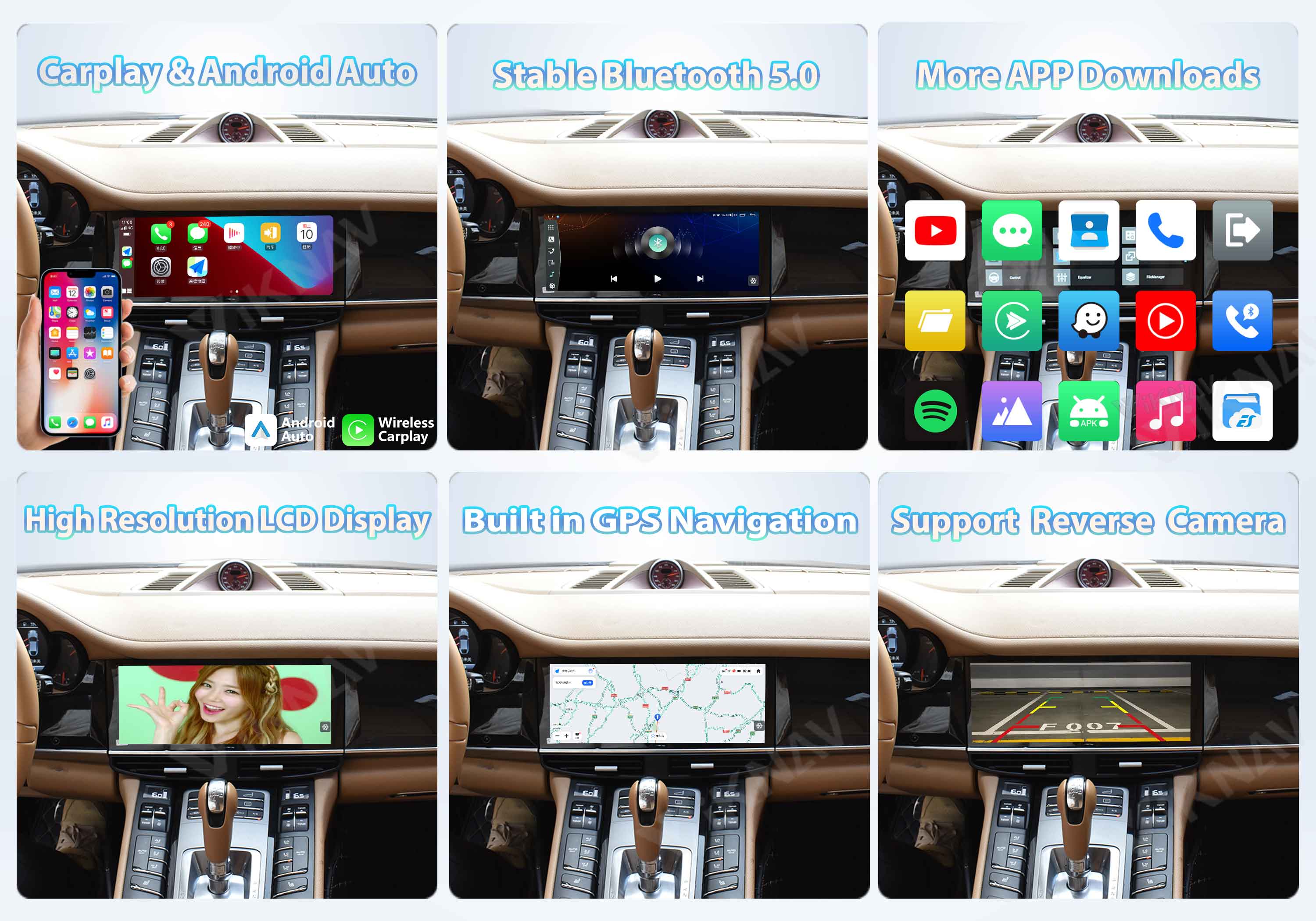 🧡This upgraded Porsche Panamera stereo built-in wireless and wired Apple CarPlay, and built-in USB connection to Android Auto; Support voice control, make hands-free calls, send/receive SMS, and listen to music/podcasts in CarPlay or Android Auto while you focus on driving.