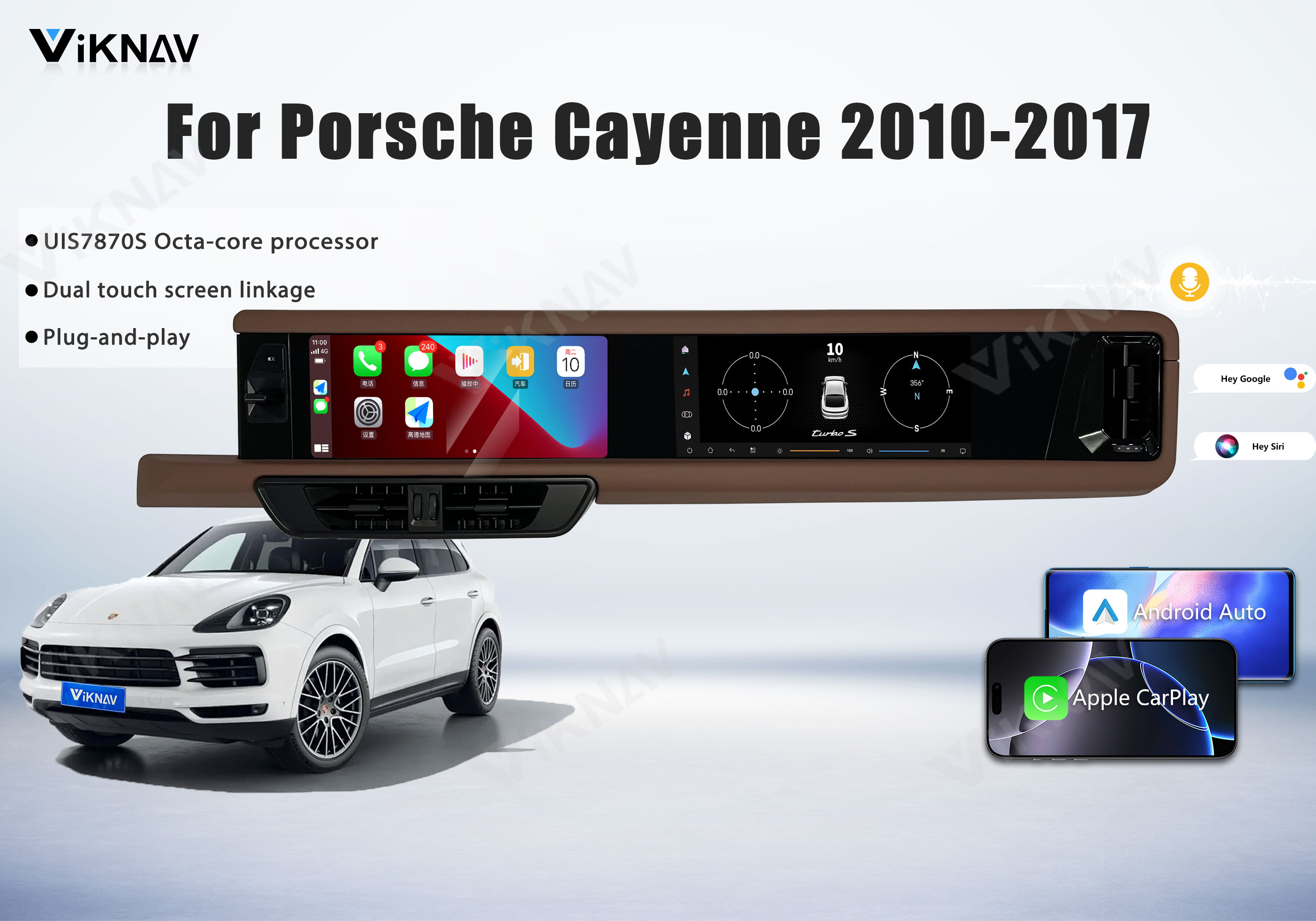 Android System 12.3 Inch+12.3 Inch Car Radio For Porsche Cayenne 2010-2017 Auto Stereo Wireless Carplay GPS Navigation Multimedia Player 128GB Dual Touch Screen (Truffle Brown)