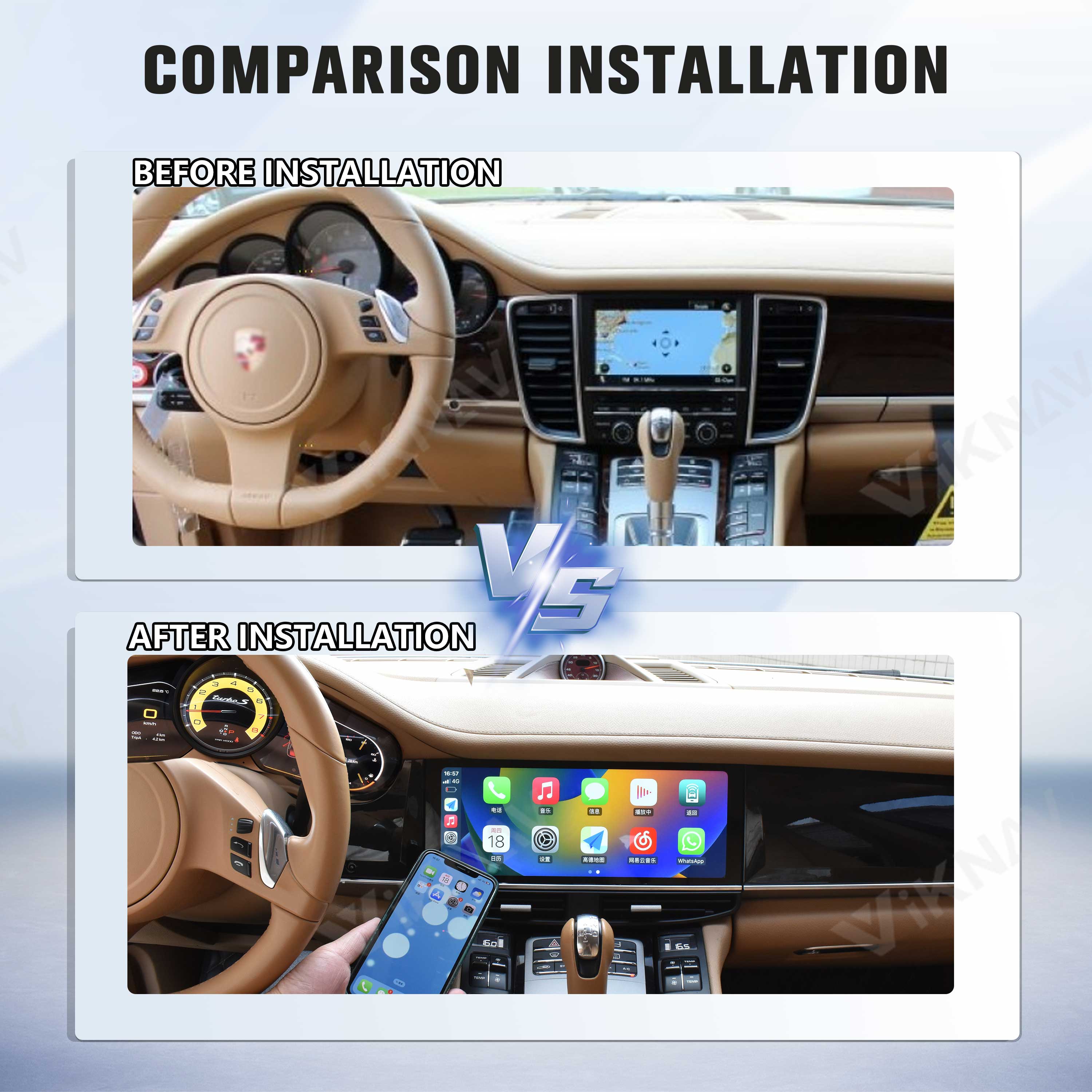 🧡This upgraded Porsche Panamera stereo built-in wireless and wired Apple CarPlay, and built-in USB connection to Android Auto; Support voice control, make hands-free calls, send/receive SMS, and listen to music/podcasts in CarPlay or Android Auto while you focus on driving.
