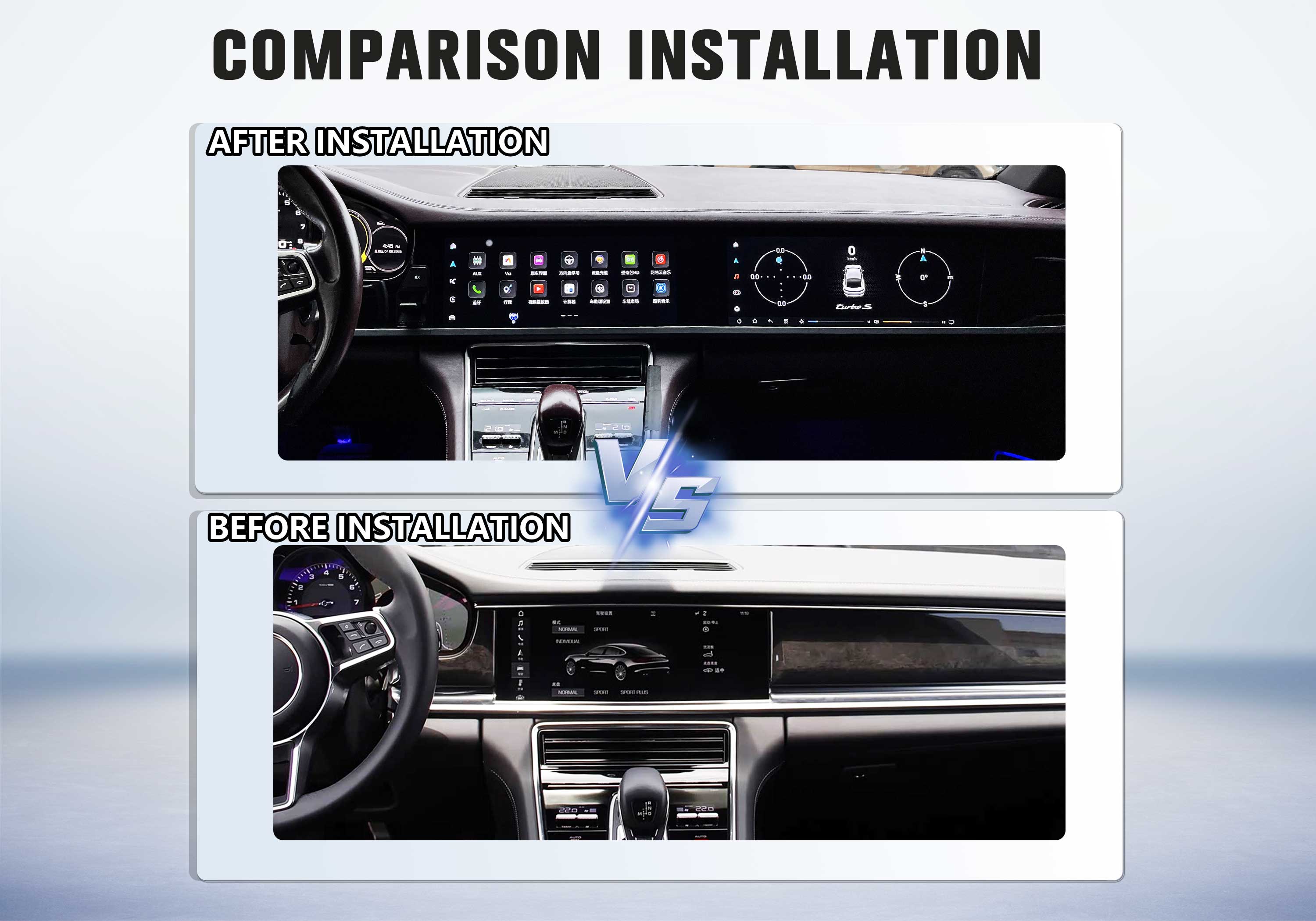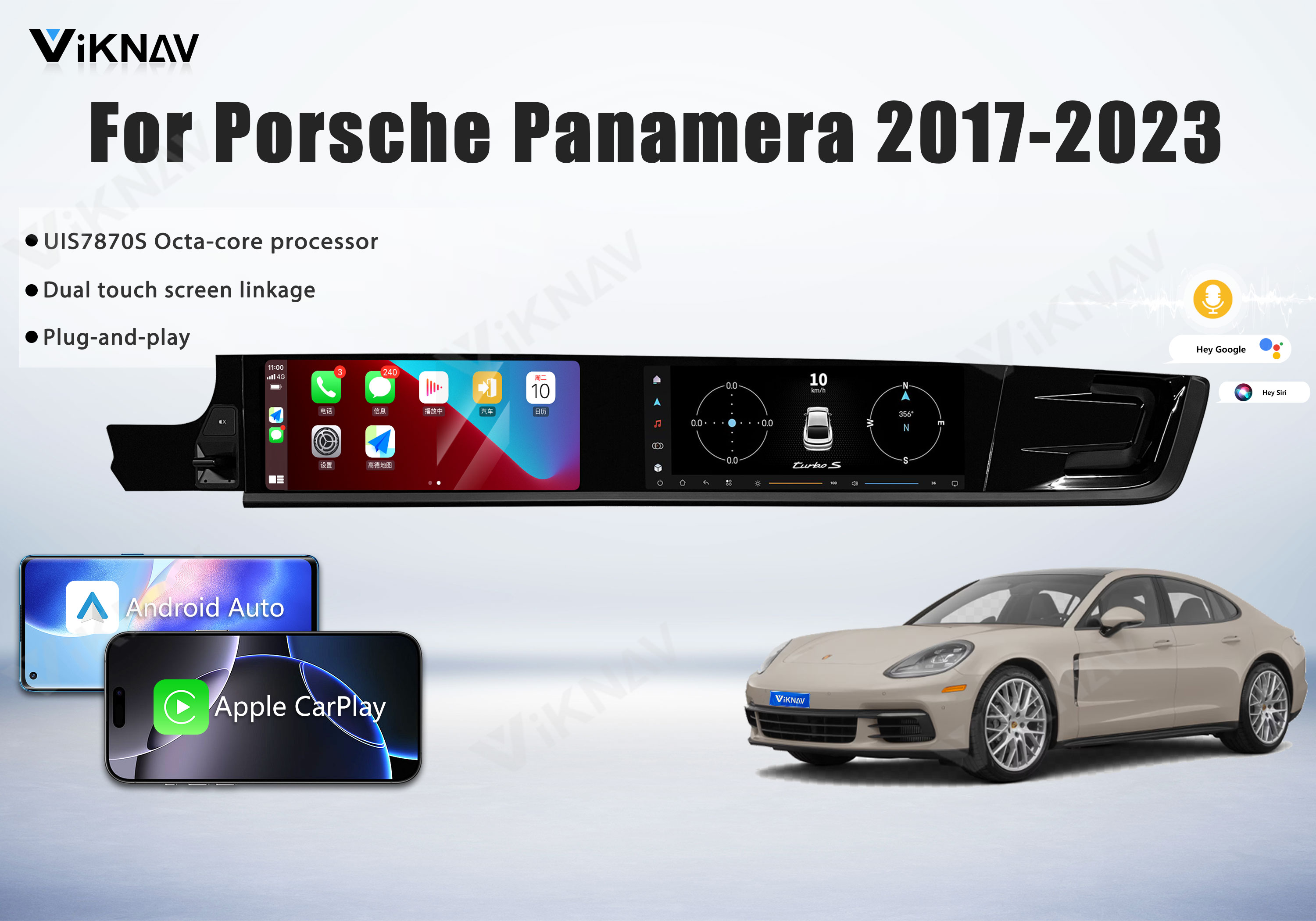 💜The android car radio fit for Porsche Panamera 2017 2018 2019 2020 2021 2022 2023. Newest Android System Dual 12.3-inch high-definition touch screen,the latest UIS7870SC processor,high resolution 2400 * 896, RAM 6GB+ROM 128GB large storage.