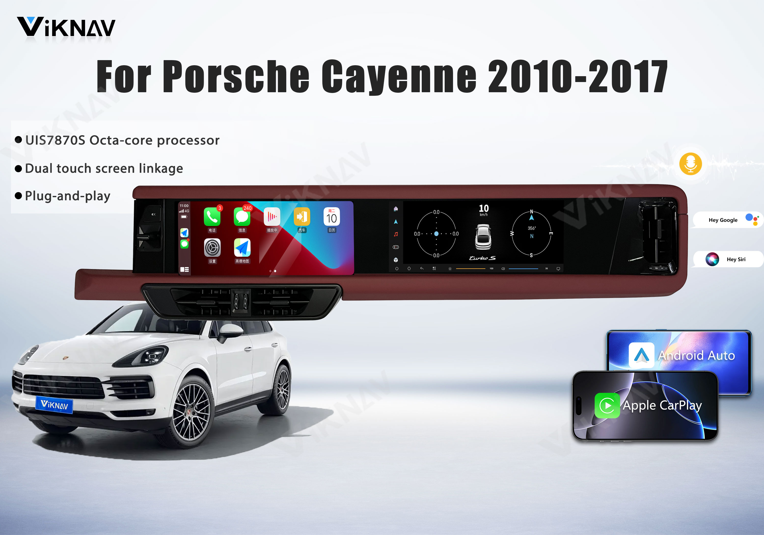 💜The android car radio fit for Porsche Cayenne 2010-2017(PCM 3.1/PCM 4.0). Newest Android System Dual 12.3-inch high-definition touch screen,the latest UIS7870SC processor,high resolution 2400 * 896, RAM 6GB+ROM 128GB large storage.