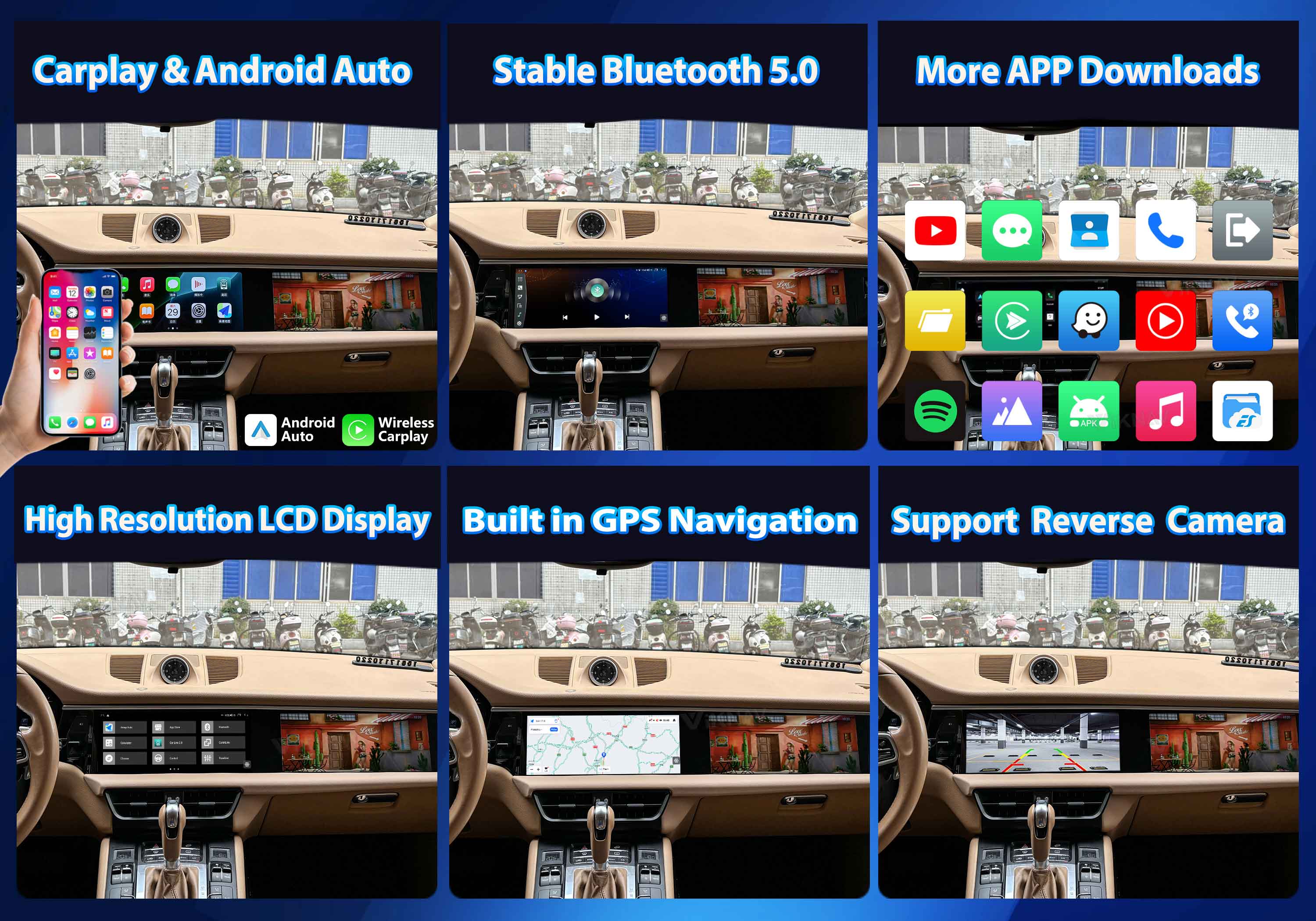 With SIM Card Slot,Can Directly Insert The SIM Card To Provide The Network For The Screen,Also Can Connect To The Hot Network Of Your Mobile Phone.(The Network System Provided By Some Network Operators Is Not Compatible With Qualcomm Modules. Please Confirm Before Use)Built-in WiFi module enables WiFi and mobile hotspot connections, you will find a new world that it is easy to internet access, real-time map updates, APP downloads and watch YouTube videos, it's like a tablet.