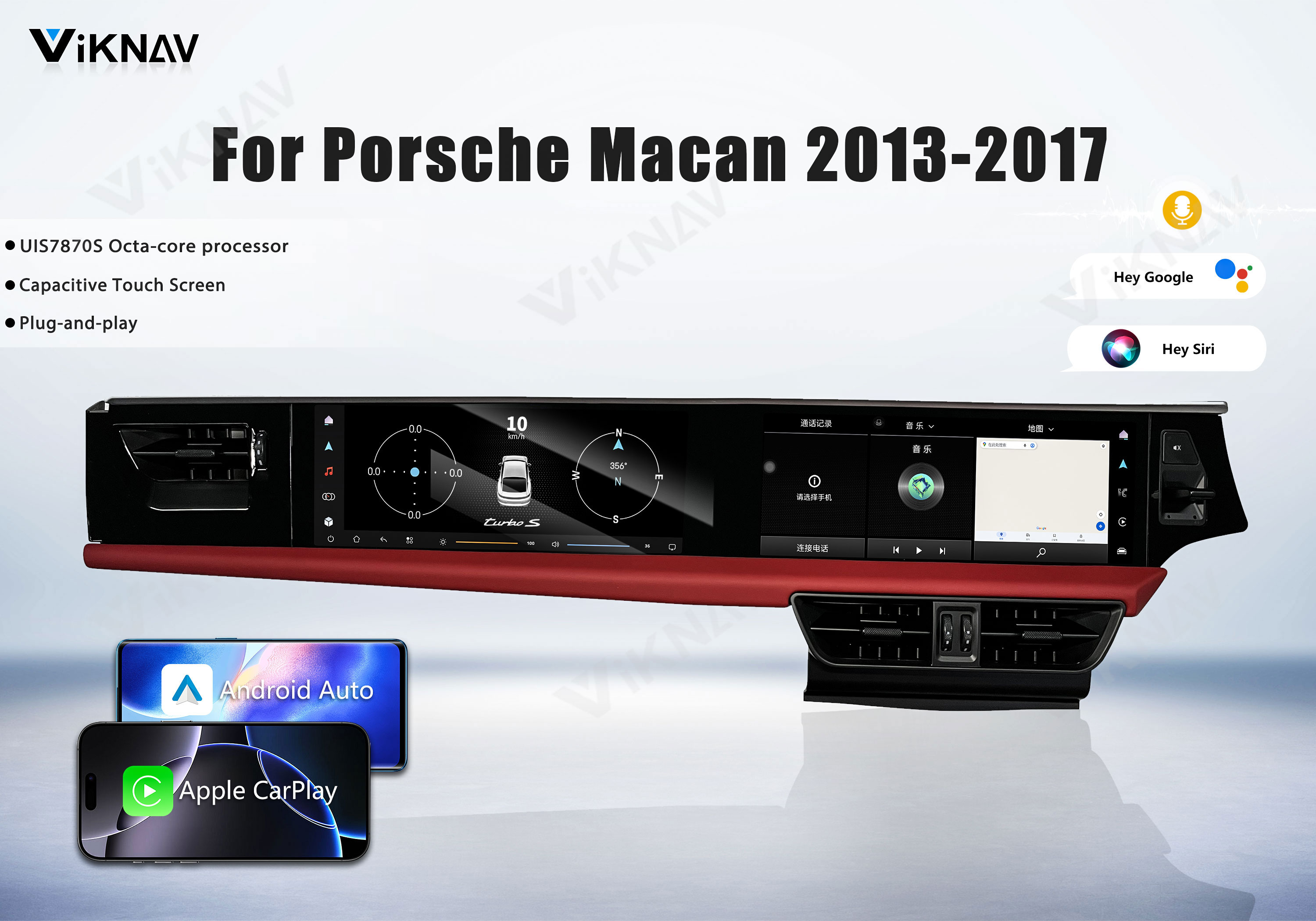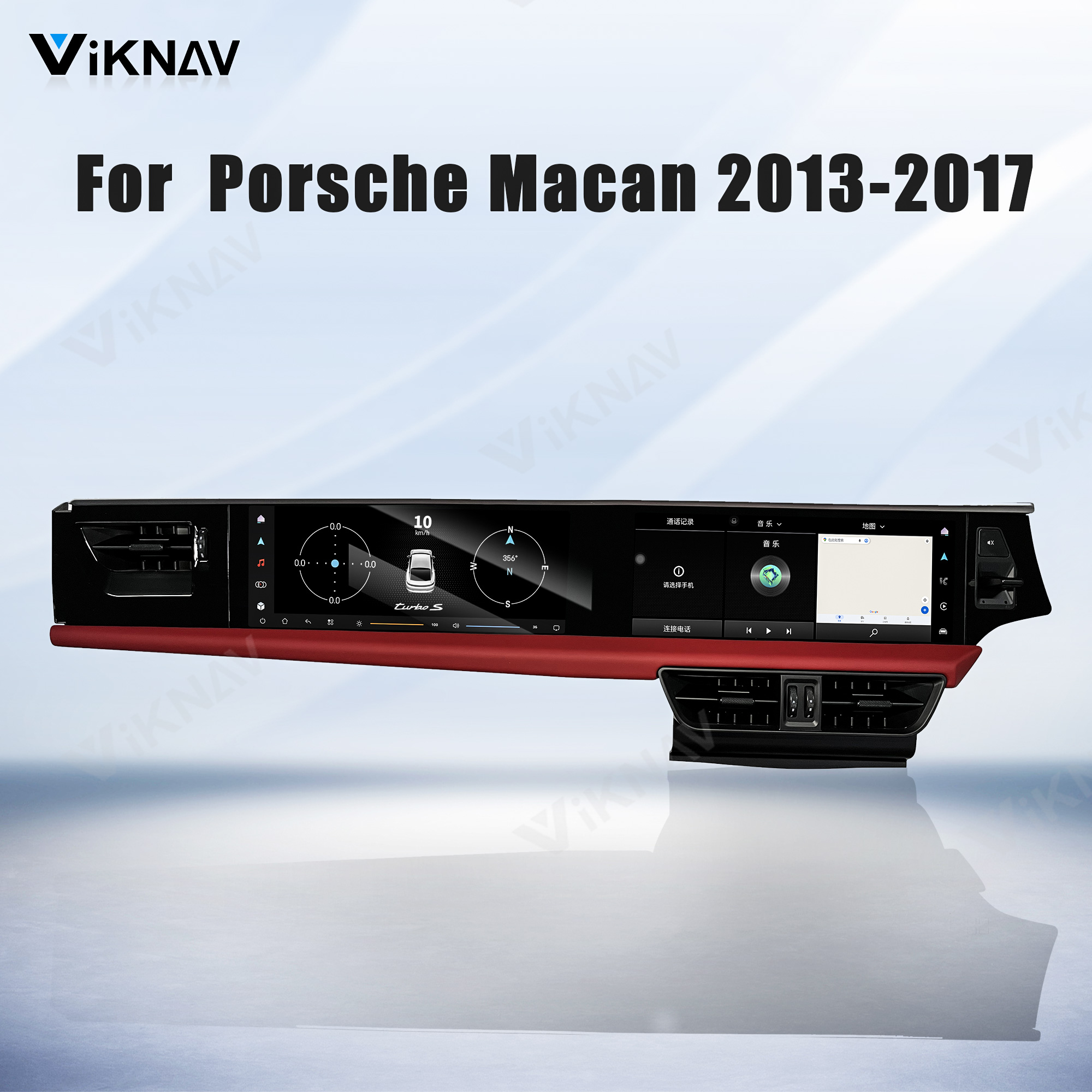 Android System 12.3 Inch+12.3 Inch Car Radio For Porsche Macan 2013-2017 Auto Stereo Wireless Carplay GPS Navigation Multimedia Player 128GB RHD Dual Touch Screen(Garnet)