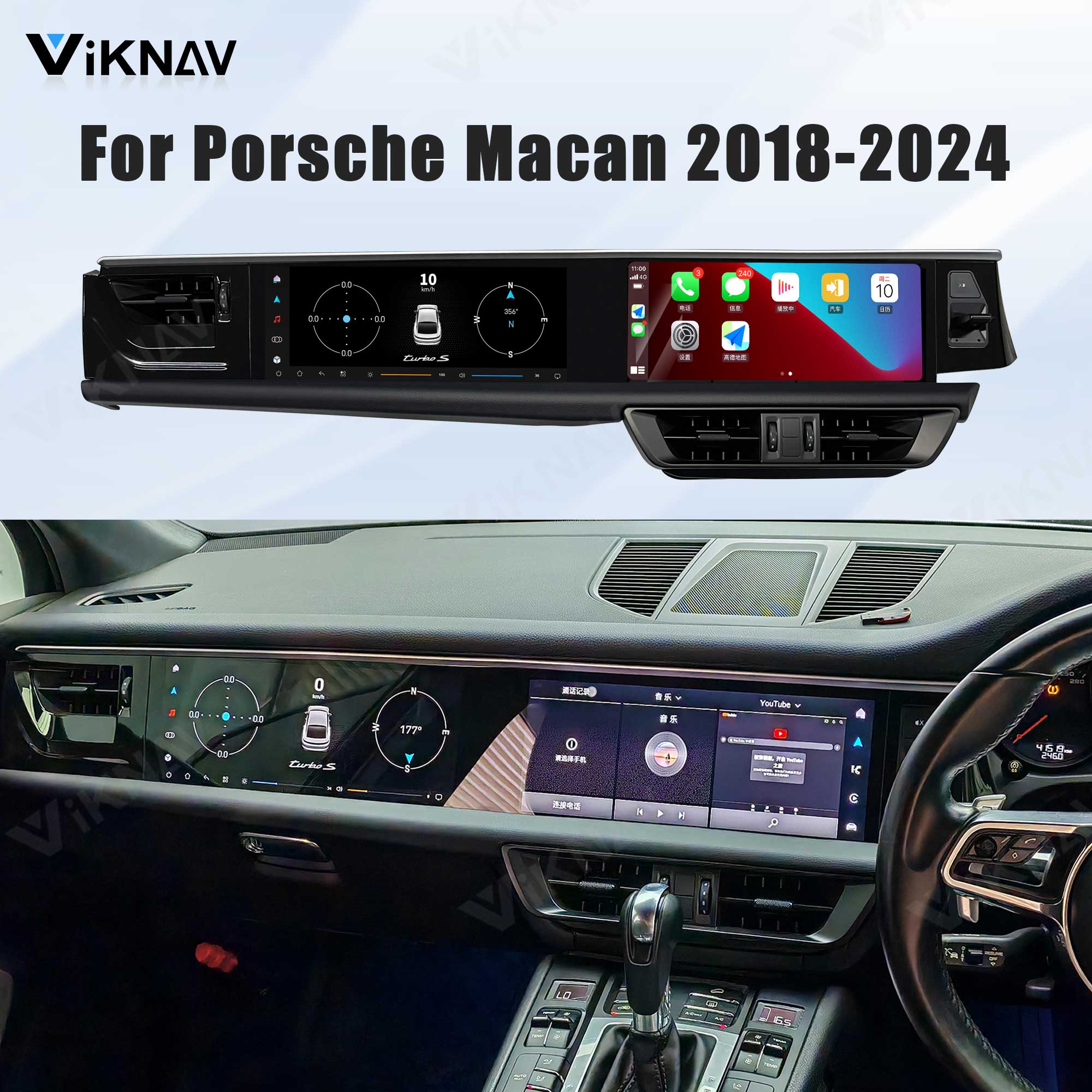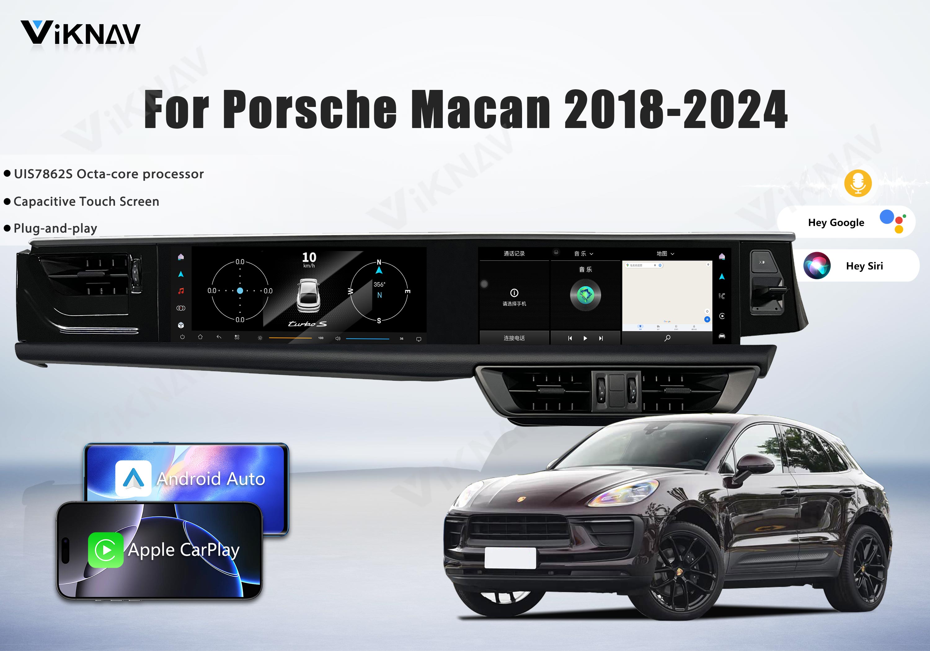 💜The android car radio fit for Porsche Macan 2018 2019 2020 2021 2022 2023 2024. Newest Android System Dual 12.3-inch high-definition touch screen,the latest UIS7870SC processor,high resolution 2400 * 896, RAM 6GB+ROM 128GB large storage.