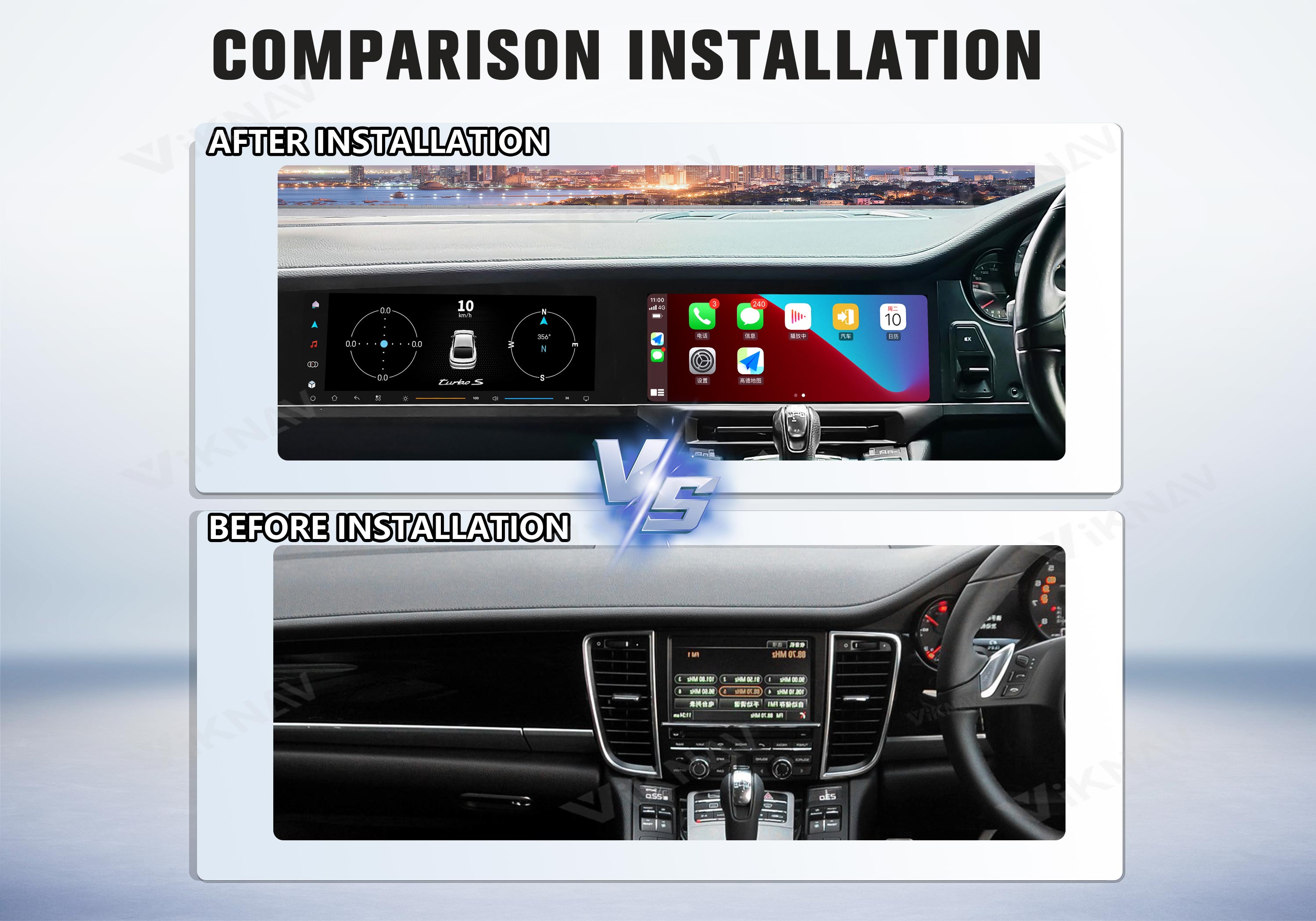 💜The android car radio fit for Porsche Cayenne 2018 2019 2020 2021 2022 2023. Newest Android System Dual 12.3-inch high-definition touch screen,the latest UIS7870SC processor,high resolution 2400 * 896, RAM 6GB+ROM 128GB large storage.