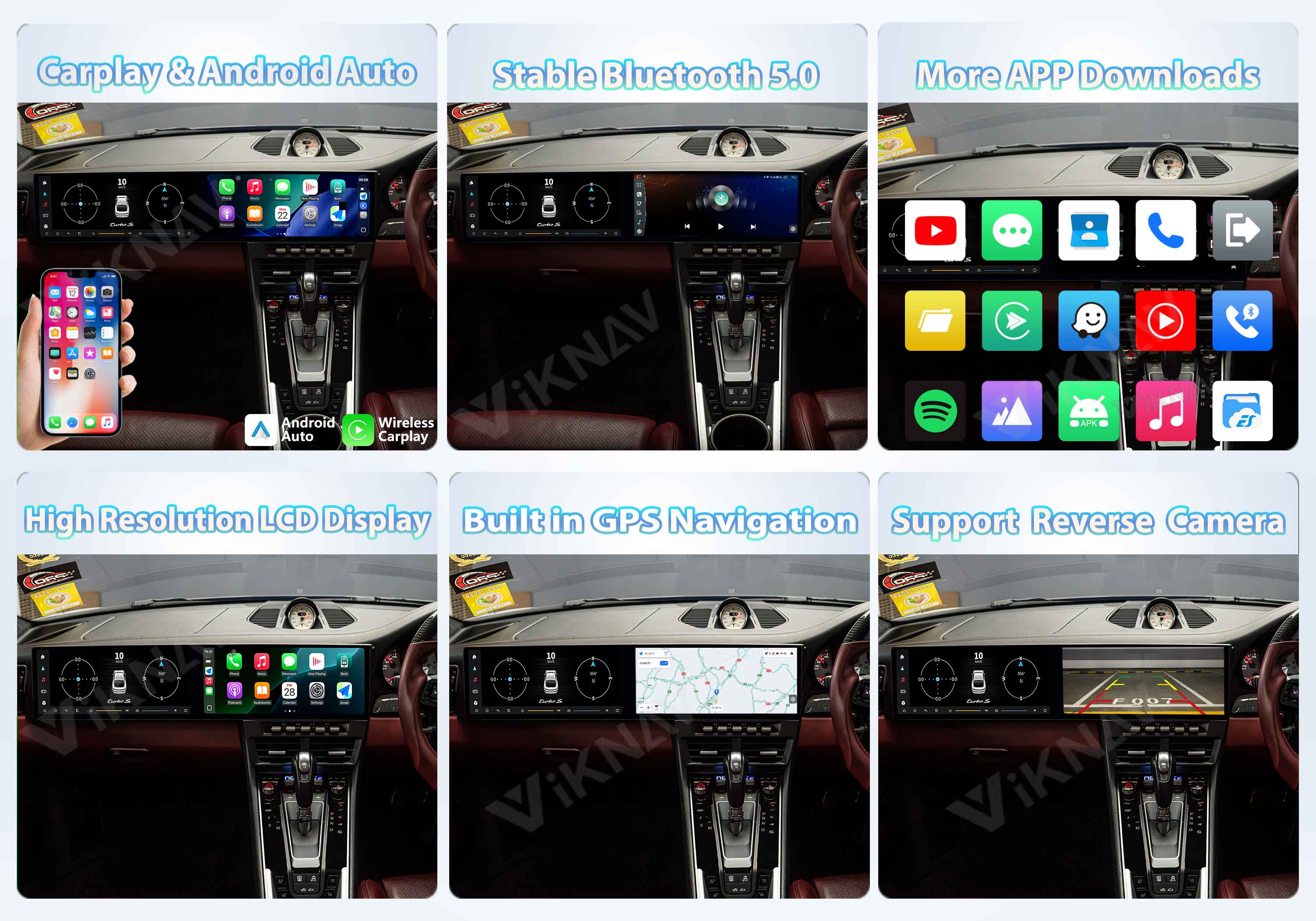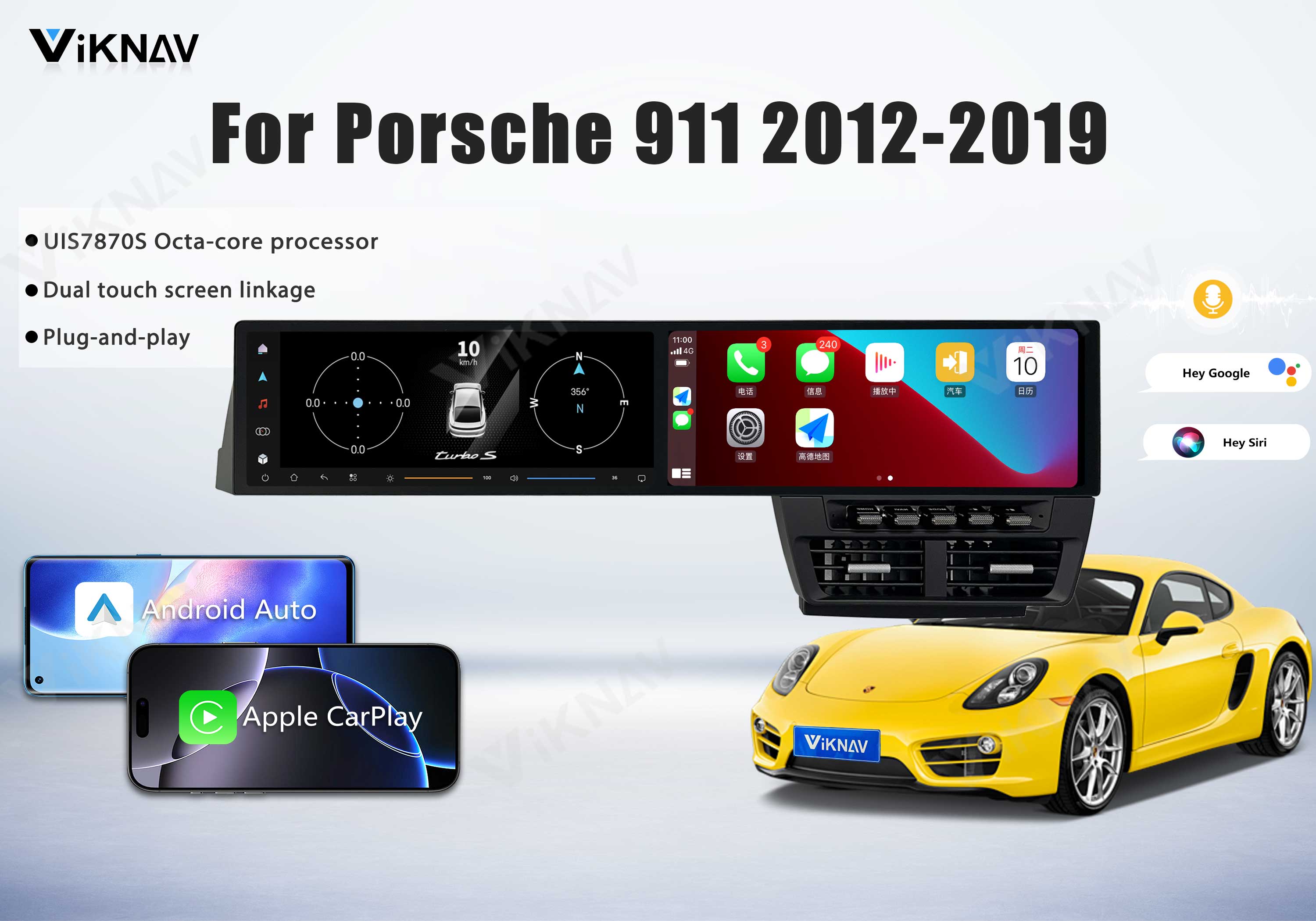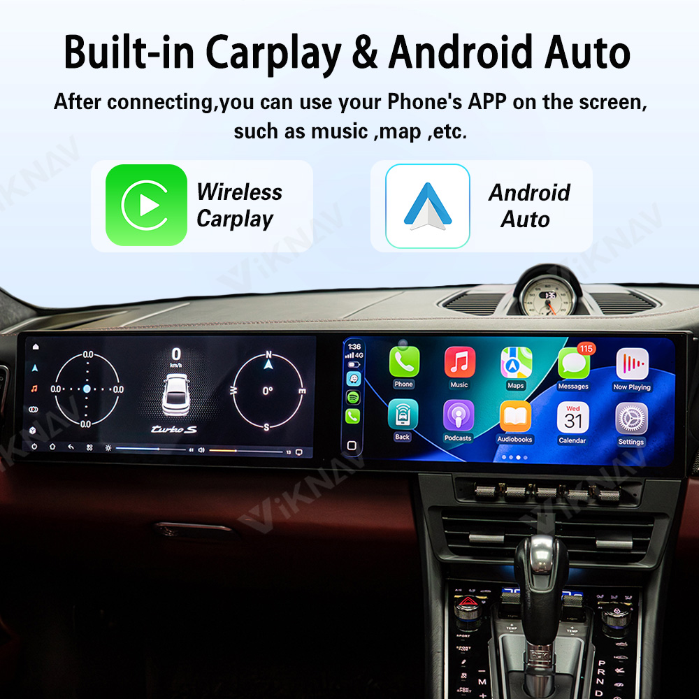 Android System Car Stereo Radio For Porsche 911 2012-2019 Auto Stereo Wireless Carplay GPS Navigation Multimedia Player Dual 12.3 Inch RHD Touch Screen 128GB