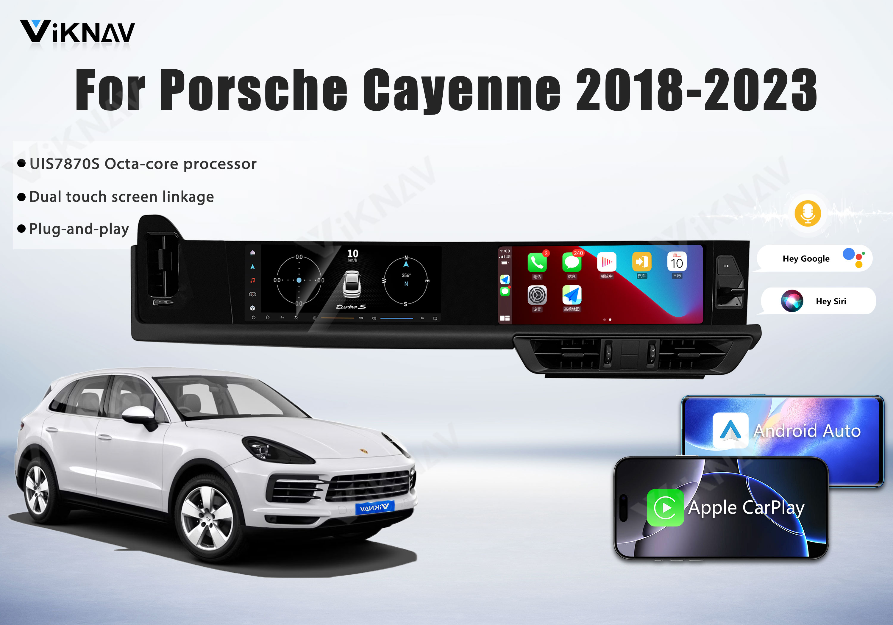 💜The android car radio fit for Porsche Cayenne 2018 2019 2020 2021 2022 2023. Newest Android System Dual 12.3-inch high-definition touch screen,the latest UIS7870SC processor,high resolution 2400 * 896, RAM 6GB+ROM 128GB large storage.