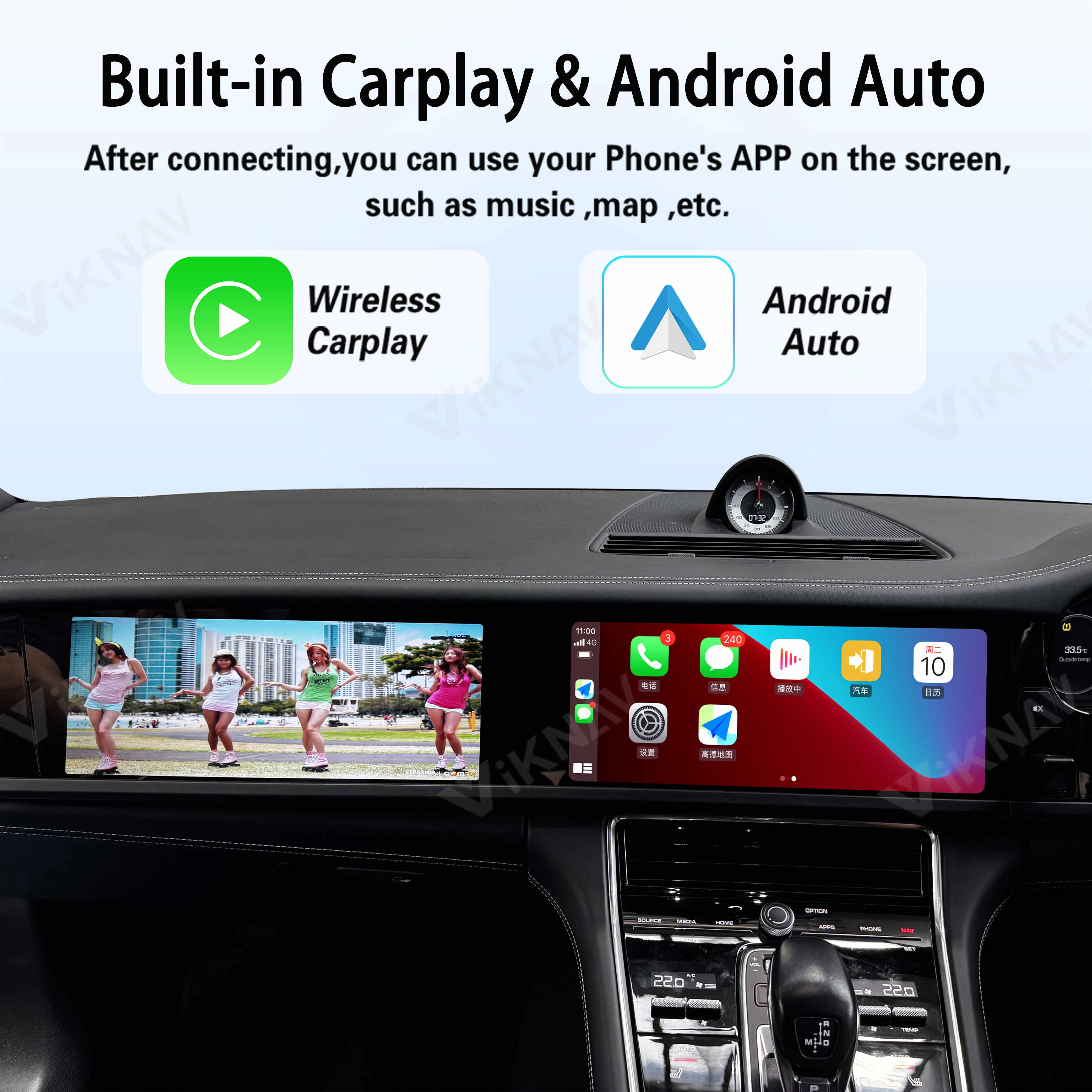 💚Wireless Carplay & Android Auto★Support connect bluetooth to use wireless carplay and android auto. also can connect wifi to get internet , but note wifi and carpaly android auto can not be used at the same , when you connet bluetooth to use carplay or android auto , wifi will be disconnected .