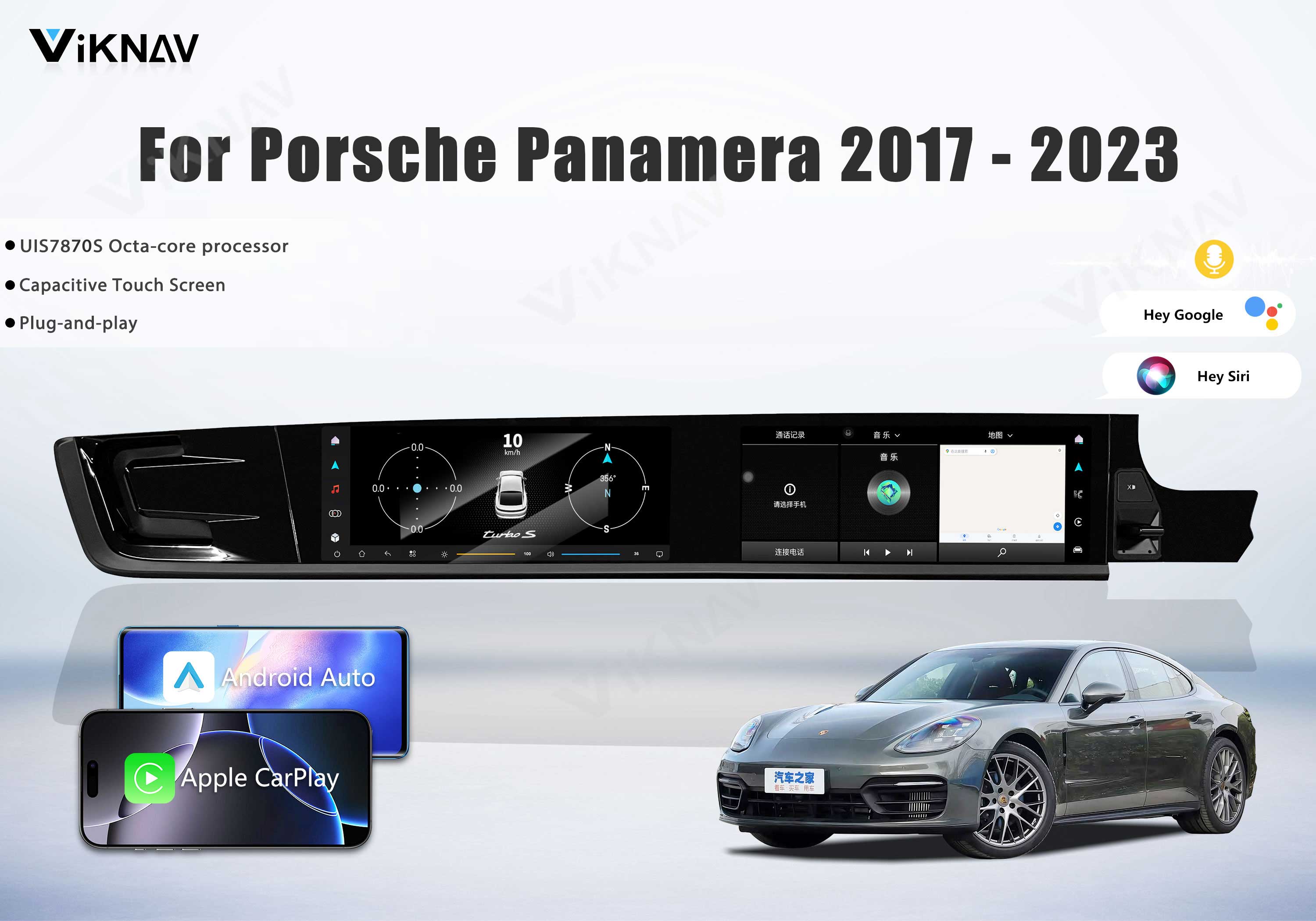 💜The android car radio fit for Porsche Panamera 2017 2018 2019 2020 2021 2022 2023. Newest Android System Dual 12.3-inch high-definition touch screen,the latest UIS7870SC processor,high resolution 2400 * 896, RAM 6GB+ROM 128GB large storage.