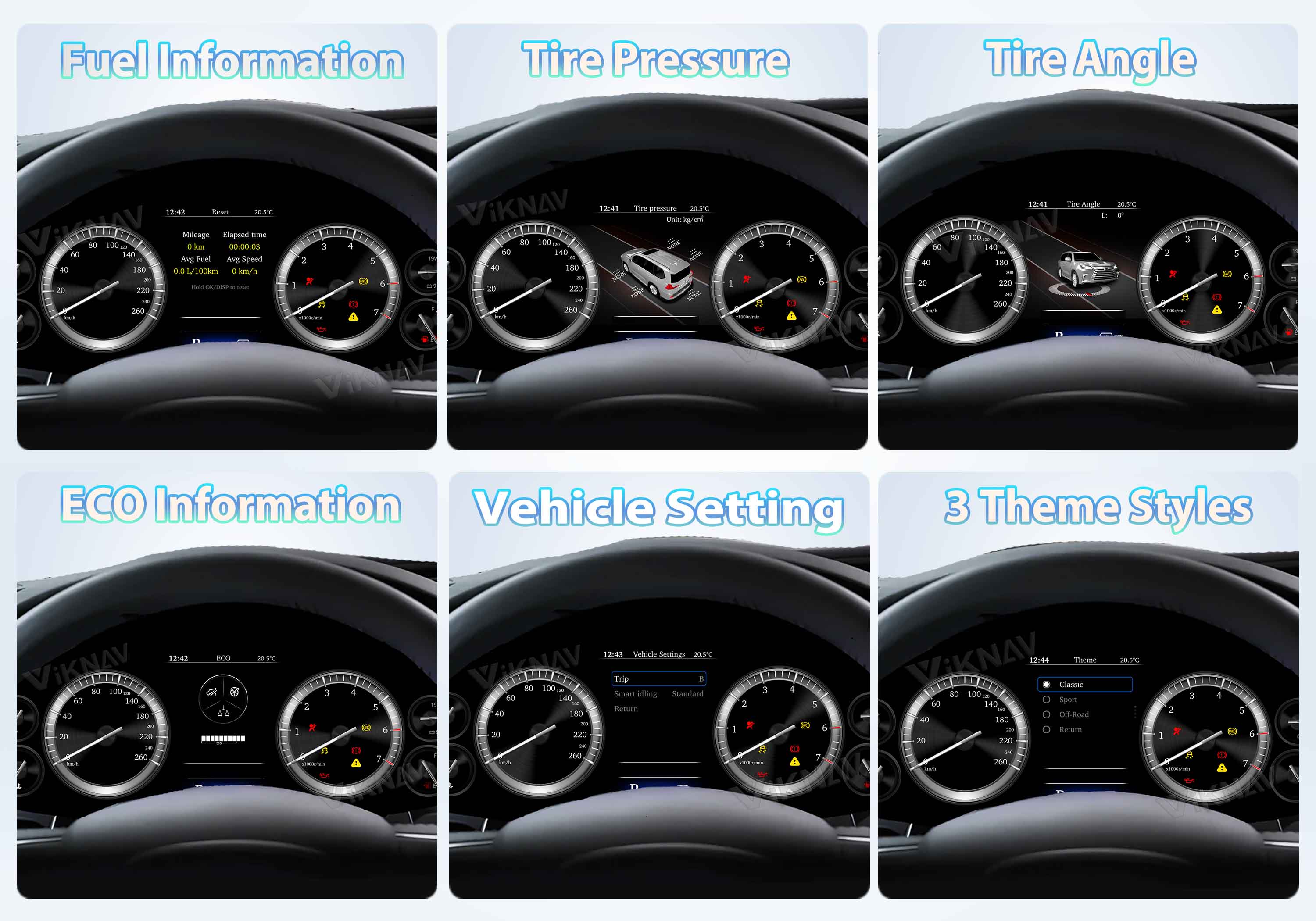 🚗Our upgrade digital cluster retain all the original car cluster data and functions.Three driving themes to switch and supports a variety of commonly used languages to meet the diversified needs of different users and easily cross the language barrier.