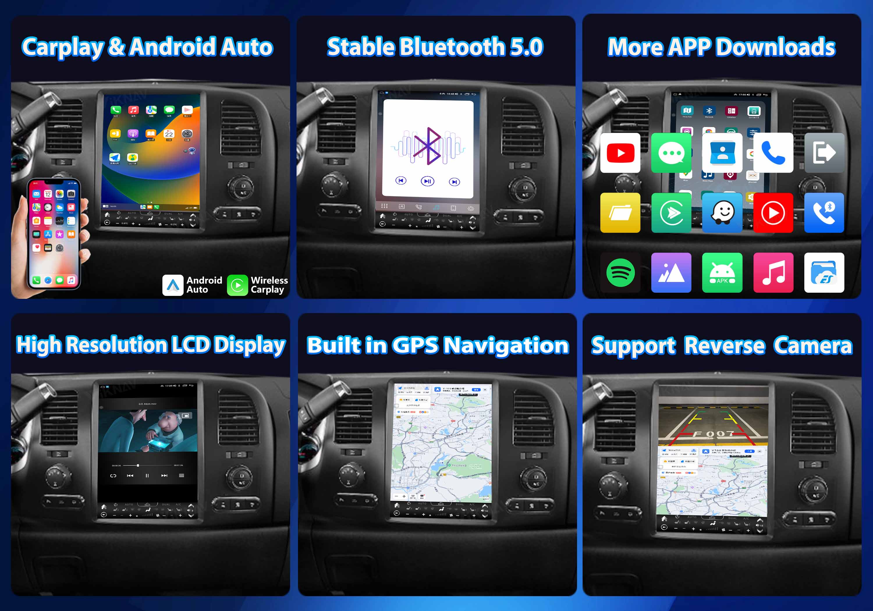 you are able to access high quality pictures, online gps navigation, messages, video player and music together in the your car.