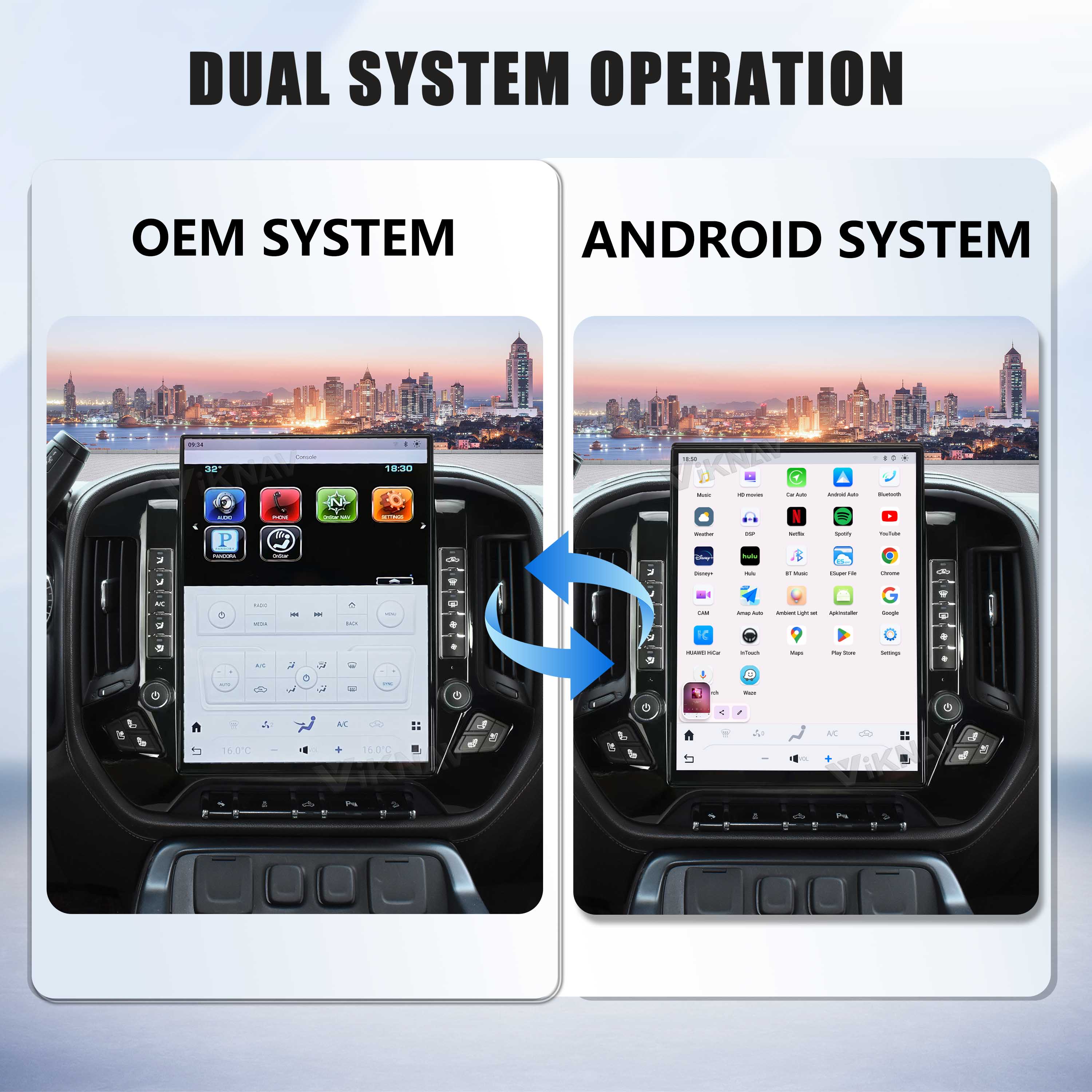 🚗Dual System Operation: After Install our this radio for Chevrolet Silverado to retain the original car system, all the original car functions can be used normally. The original car BOSE system and B&O system can be supported. The original car camera can be used.and it will also can use android system.