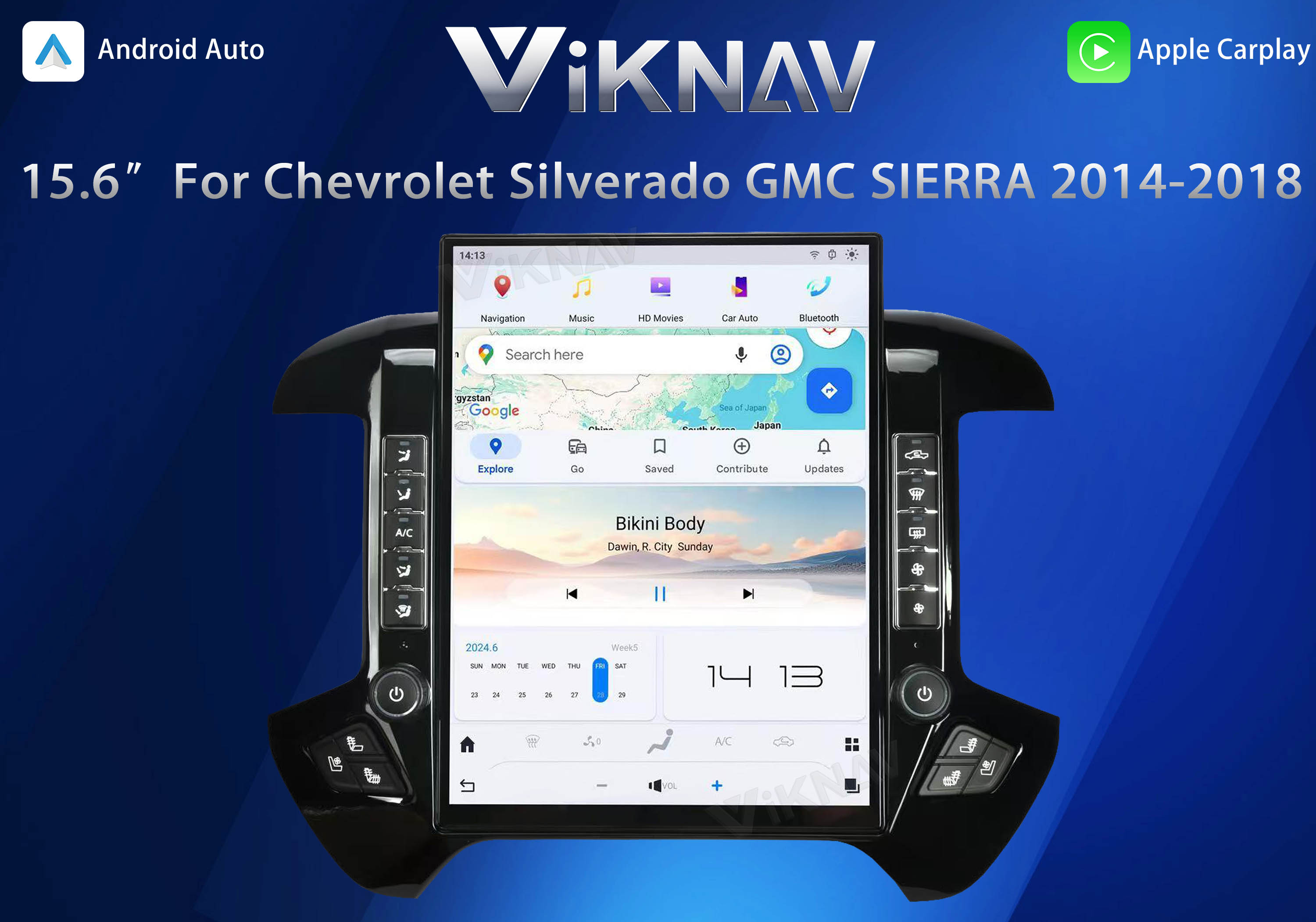 Viknav 15.6 Inch Larger Screen Car Radio For Chevrolet Silverado / GMC SIERRA 2014-2018 Android Head Unit Wirless Carplay GPS Navigation Player Autoradio (black 128GB)