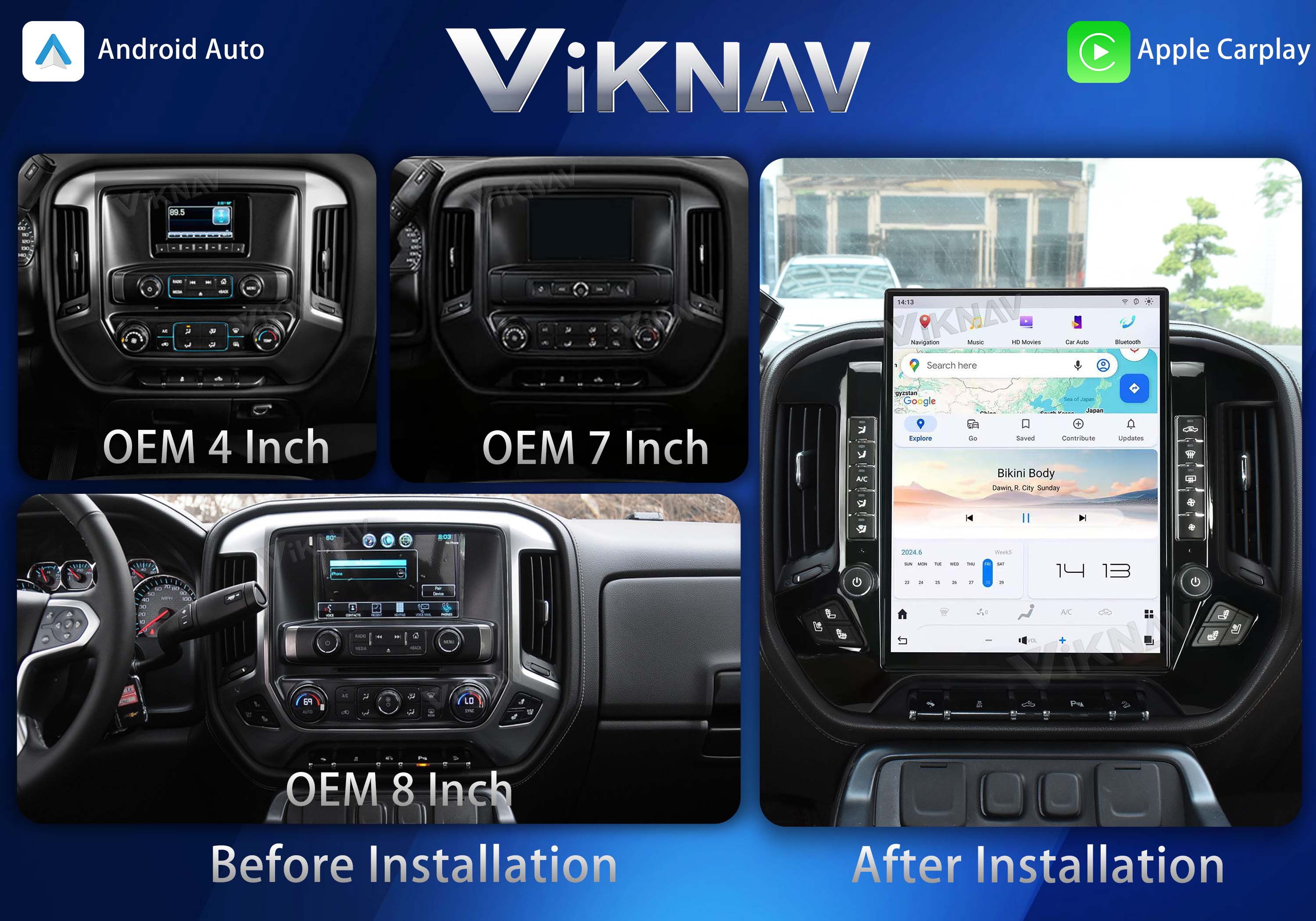 For GMC Sierra Chevrolet Silverado 2013 2014 2015 2016 2017 2018 oem 4 inch ,oem 7inch manual ac and oem 8inch auto ac