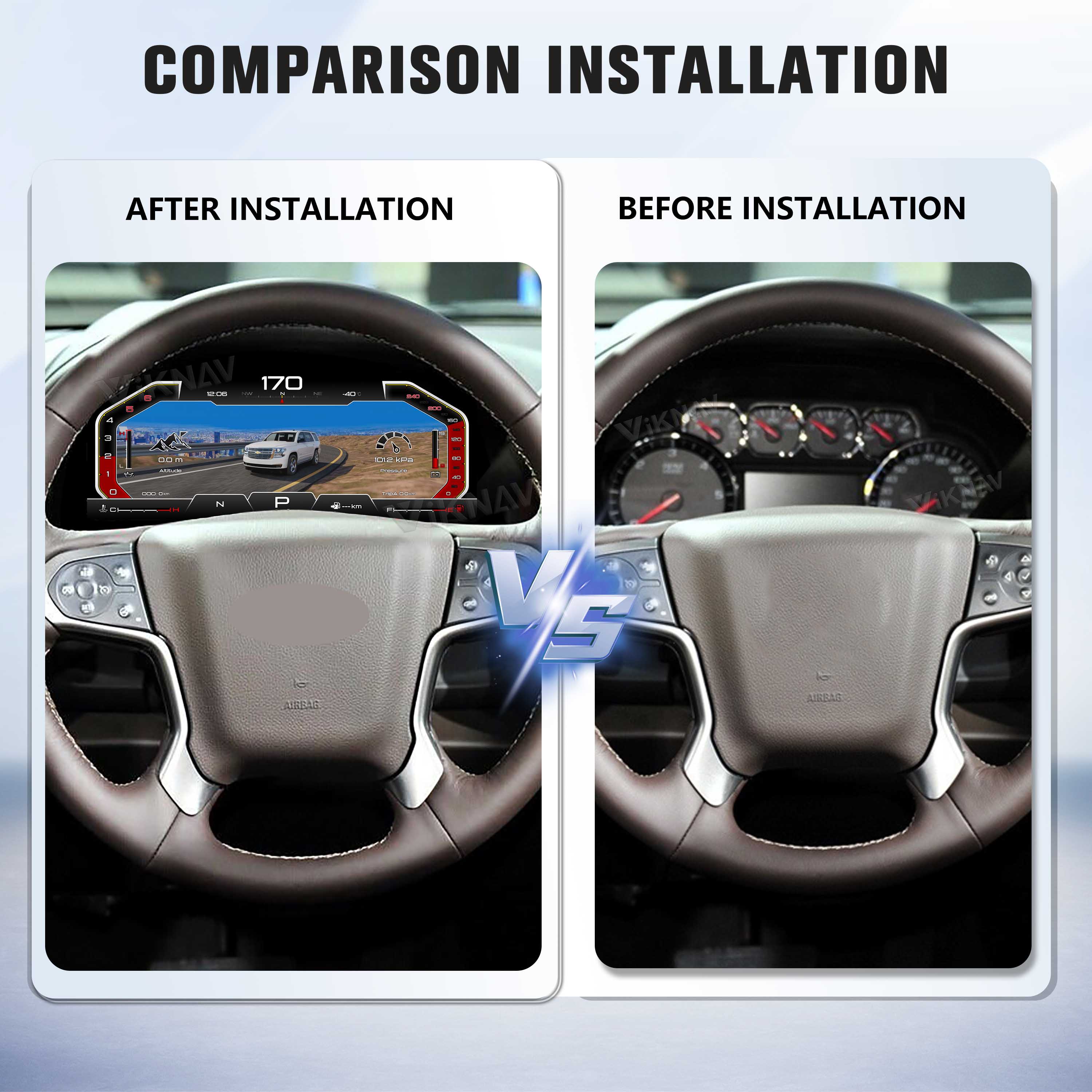 🚗Operating Mode:Control the digital cluster through the right side buttons of original car steering wheel.