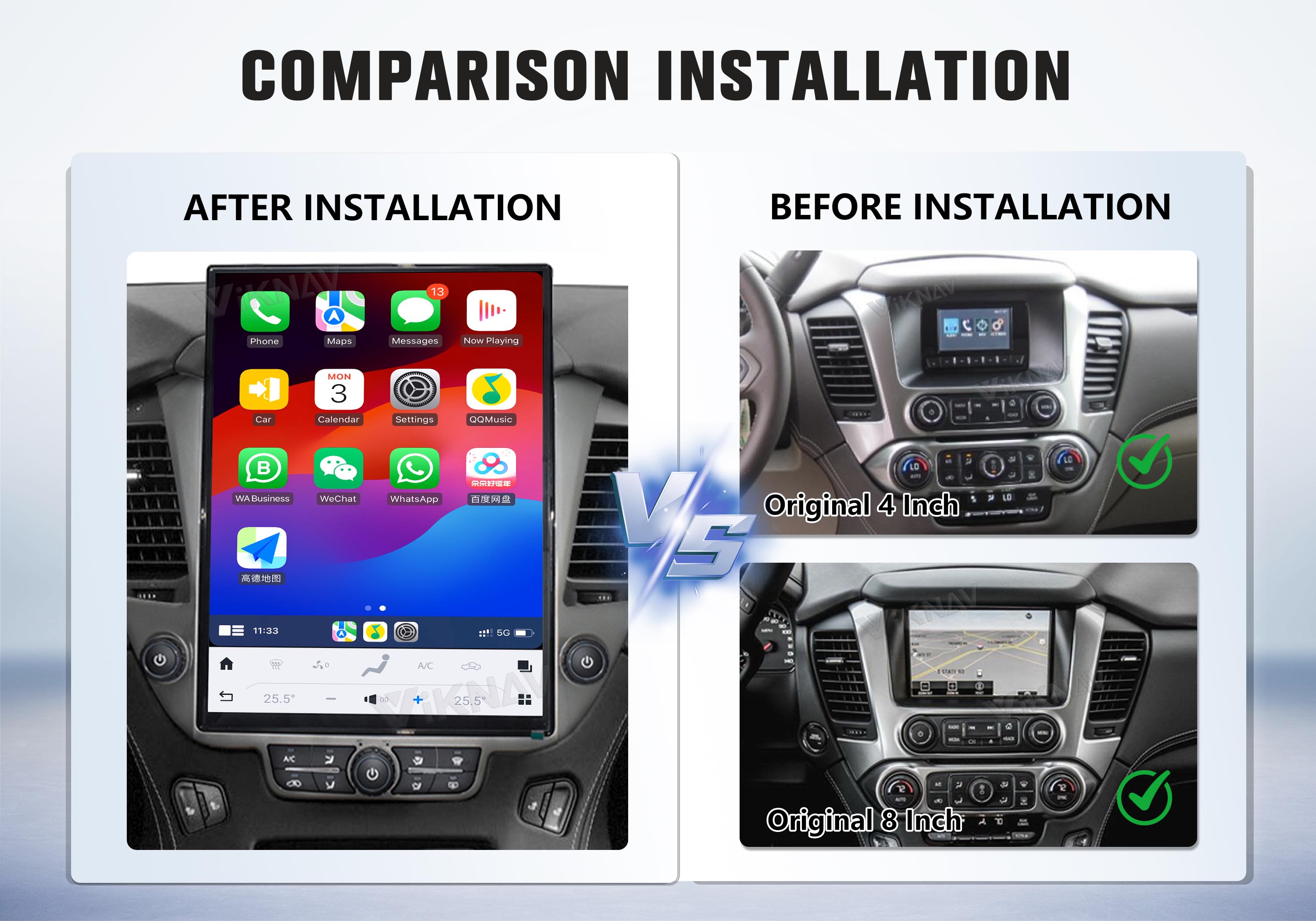 ✅Fit for Chevrolet Tahoe Suburban GMC Yukon 2014-2020 oem 4 inch screen and 8inch screen car model,but digital cluster currently only supports the Gasoline version, not supports the Diesel version.