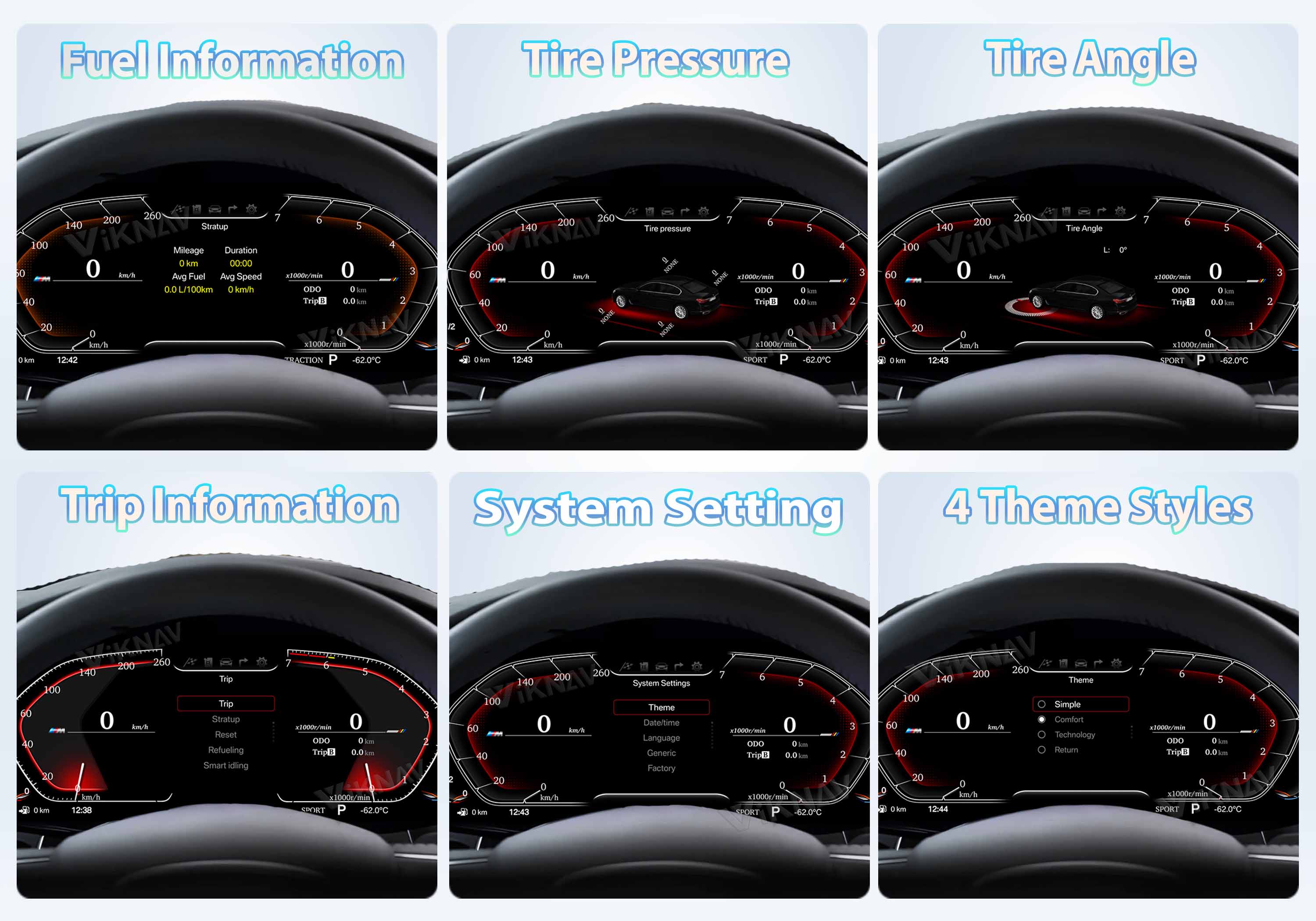 🚗Our upgrade digital cluster retain all the original car cluster data and functions.Four driving themes to switch and supports a variety of commonly used languages to meet the diversified needs of different users and easily cross the language barrier.