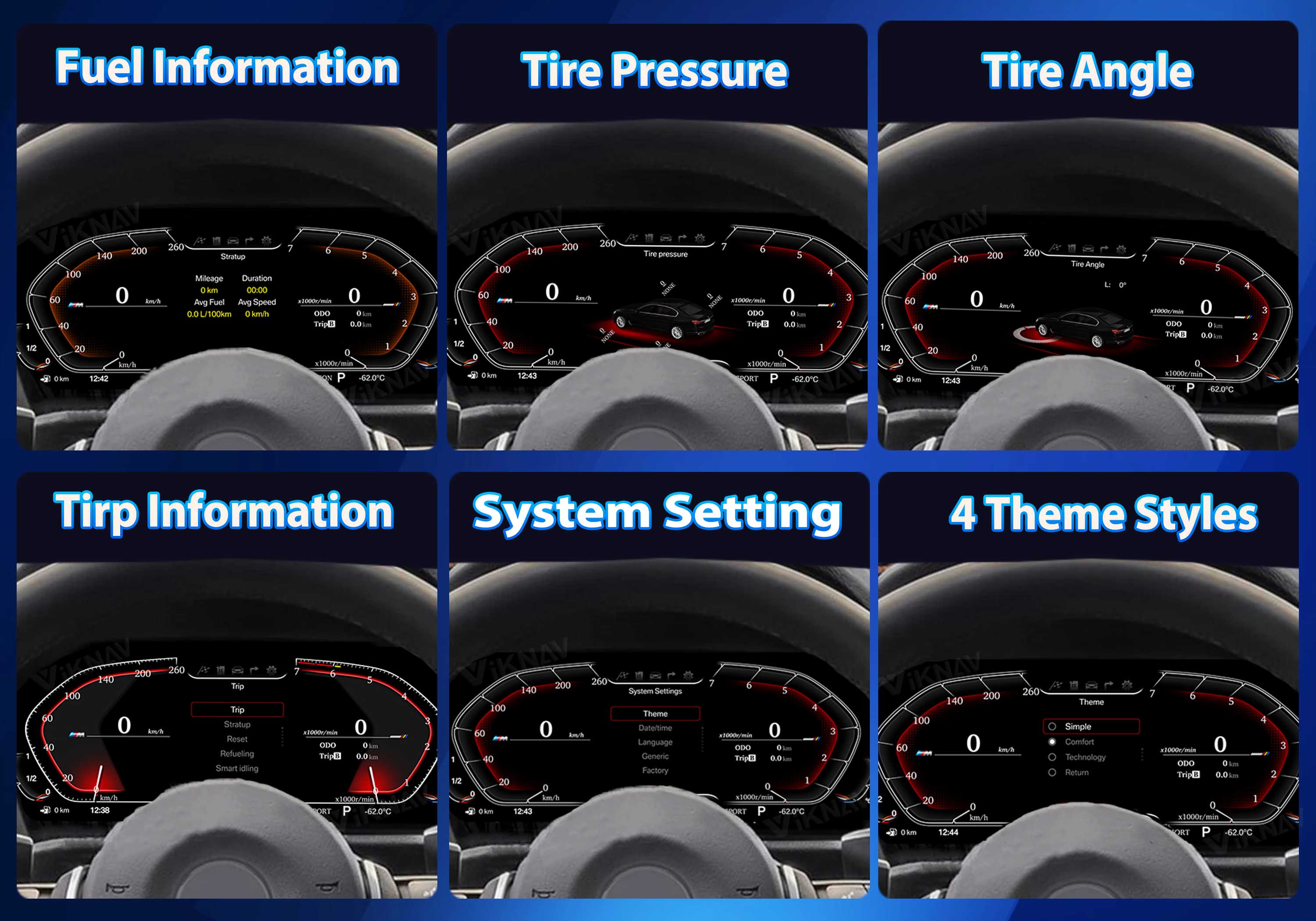 Compatible with all the information/ and error code display of the original instrument itself: ACC adaptive cruise control, lane keeping, speed limit sign, tire pressure,