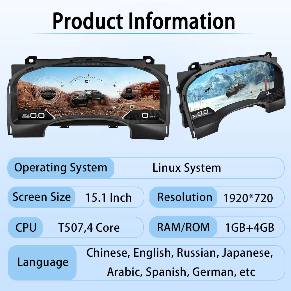 🚗The original mechanical gauges are upgraded to 15.1 inch high-definition 1920*720 screen smart car digital gauges, using cutting-edge technology, giving your car a distinctive style, opening up a new extraordinary driving experience, making your car stand out on the road.