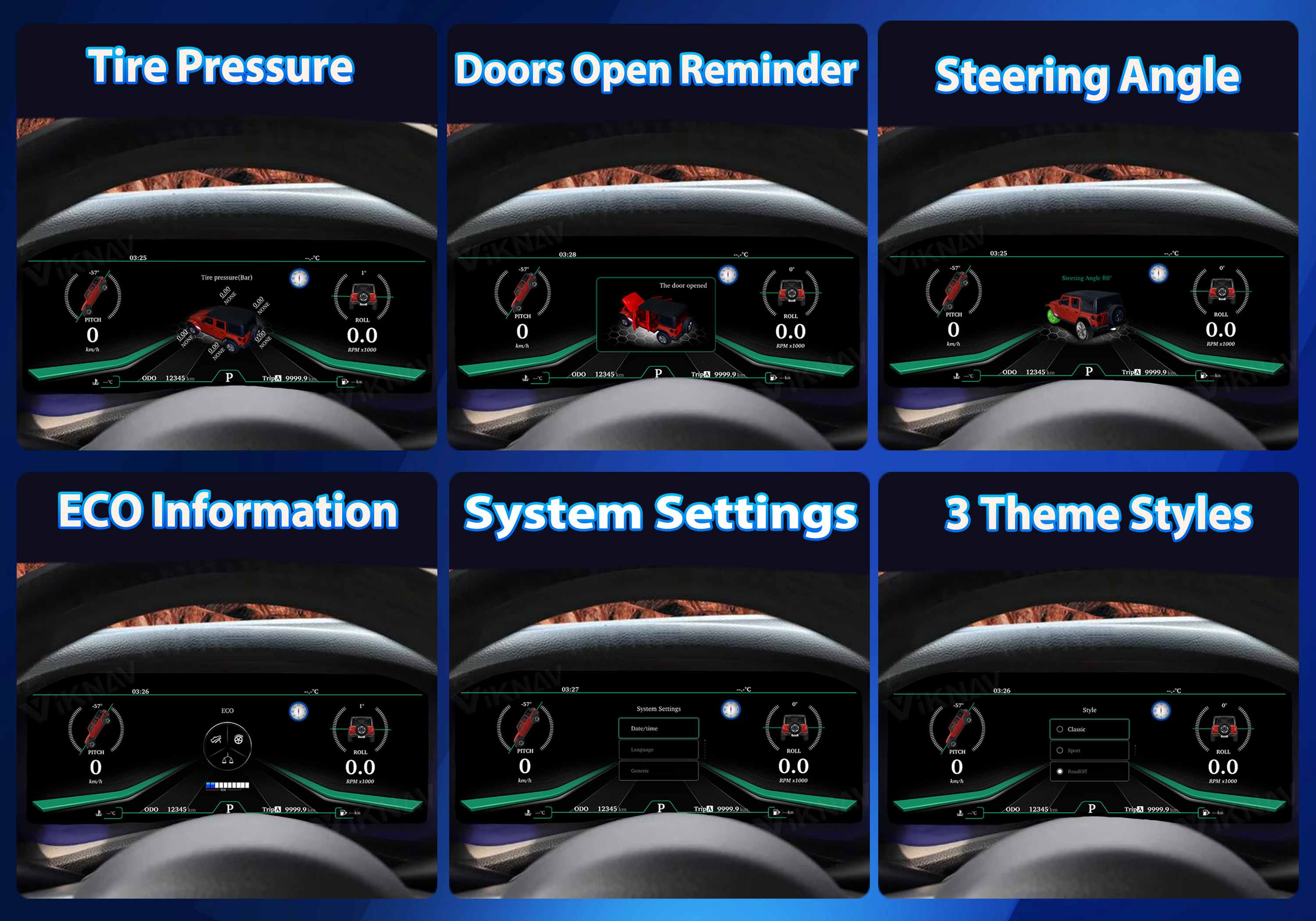 And 4x4 can display dynamic effects. (Note: Tire pressure requires aftermarket installation)