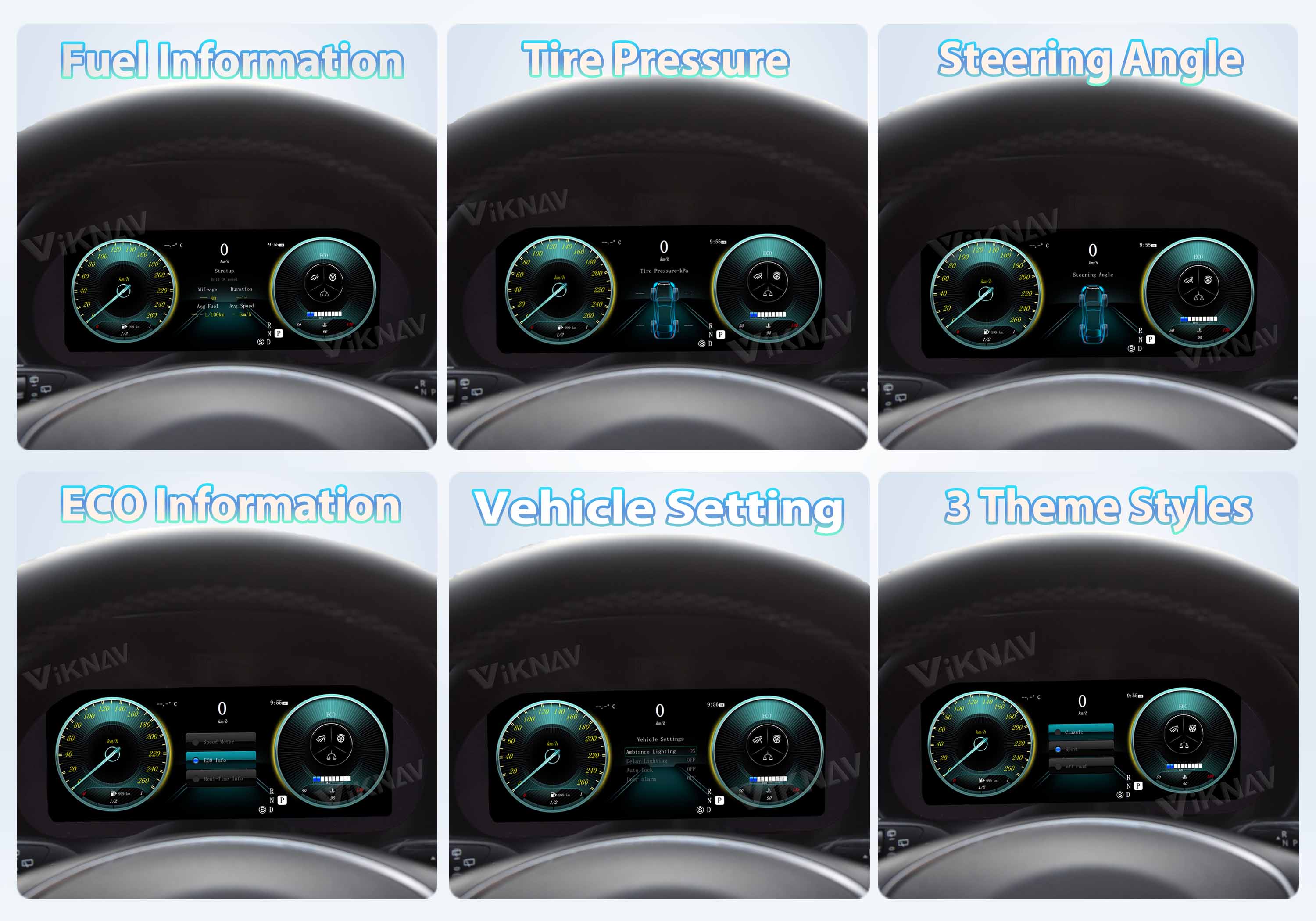 🚗Our upgrade digital cluster retain all the original car cluster data and functions.Three driving themes to switch and supports a variety of commonly used languages to meet the diversified needs of different users and easily cross the language barrier.