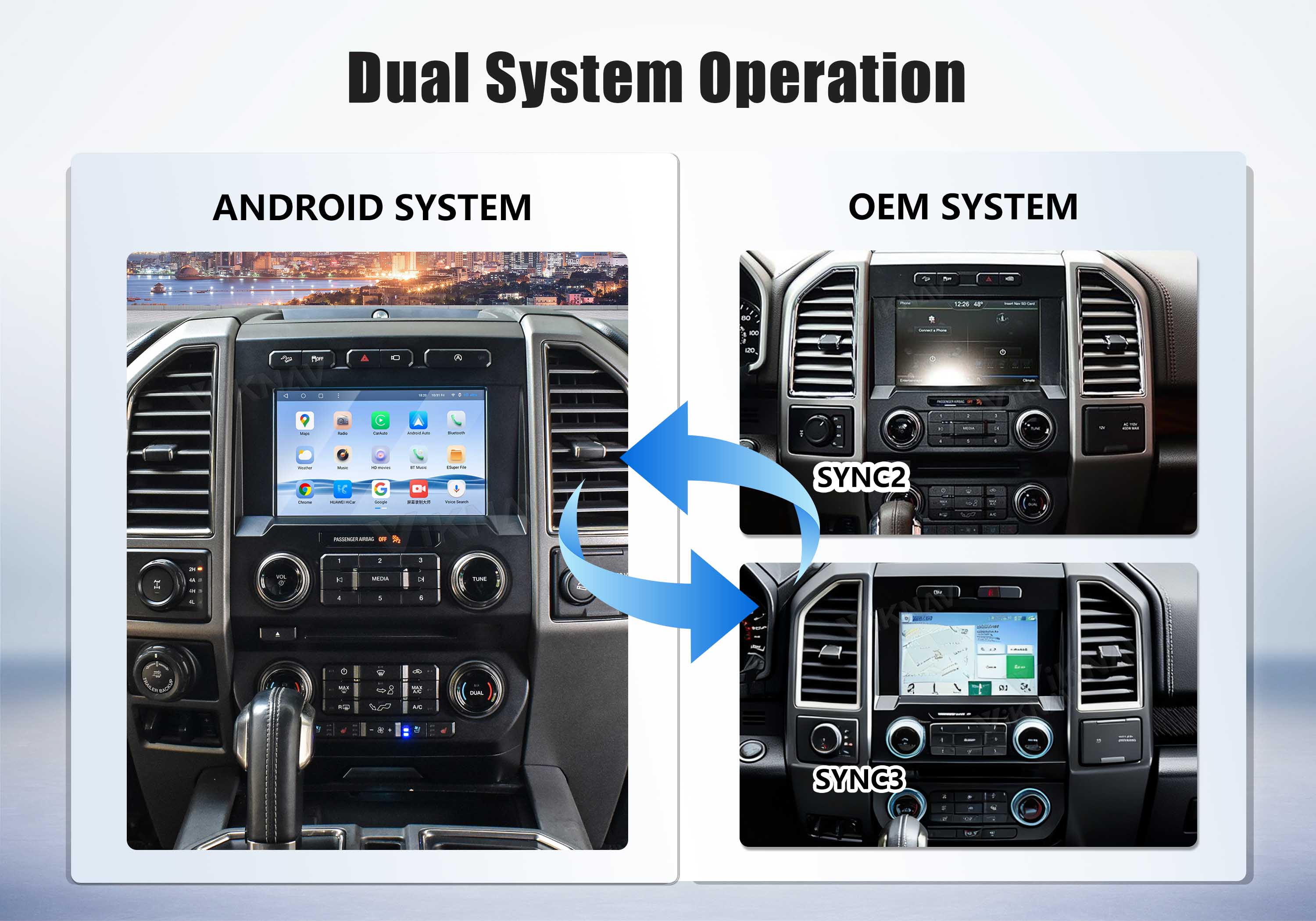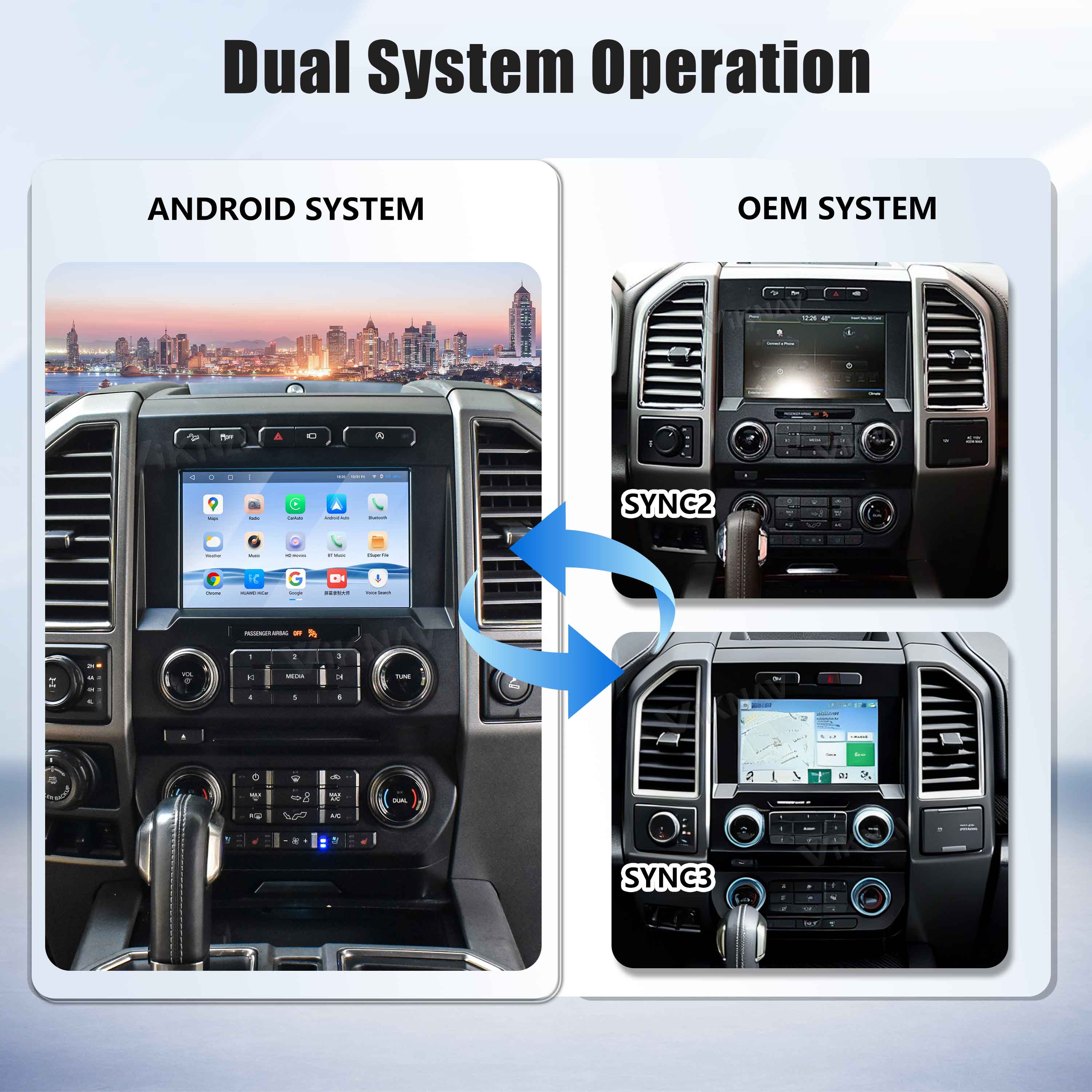 🚗Dual System Operation: After Install the android box for Ford F150, it will retain the original system, all original functions and also can use android system and all android apps.