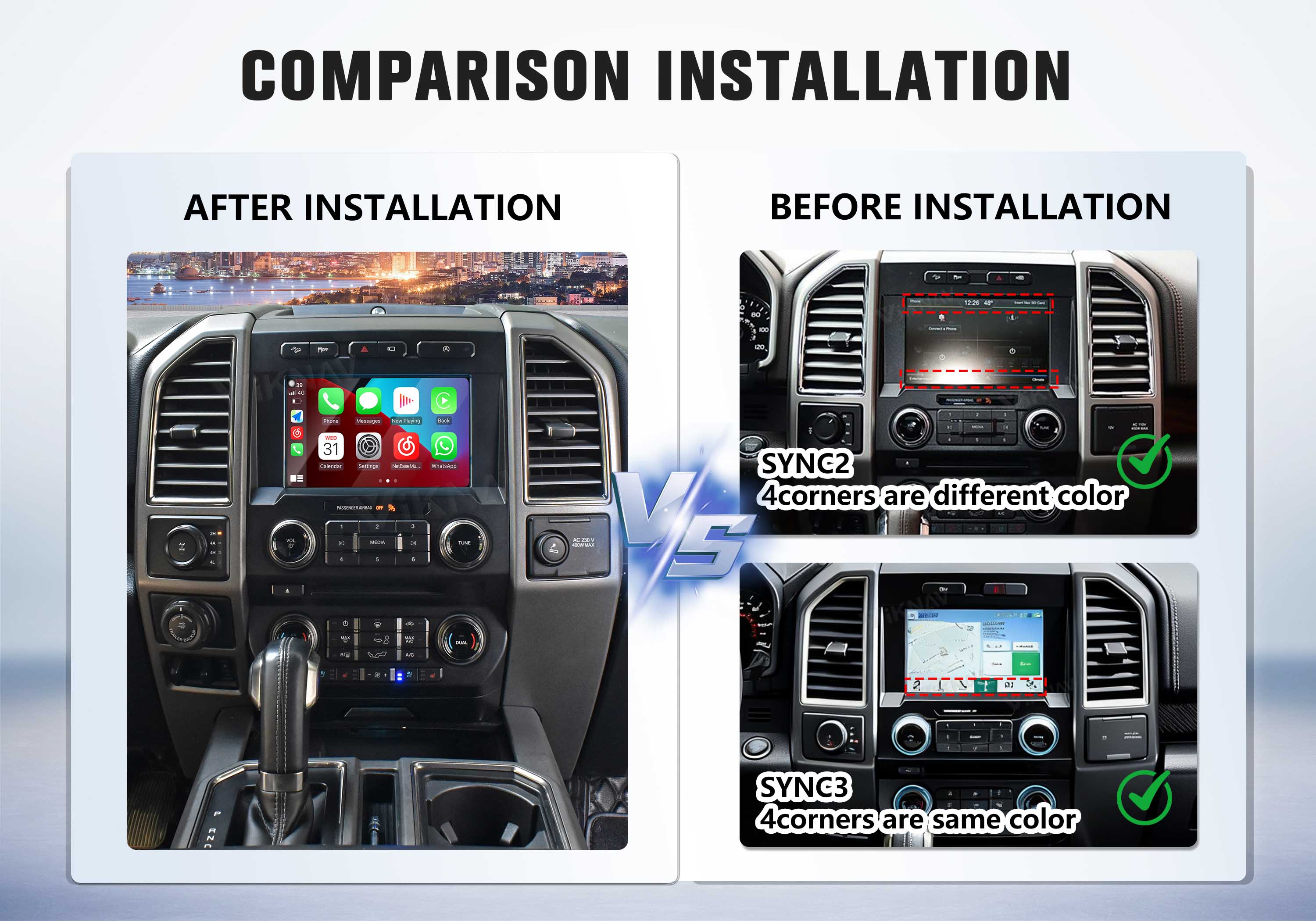 ✅Fit for Ford F150 Raptor 2015-2020 only support 8inch screen car model SYNC2 and SYNC3 module, do not support OEM small screen SYNC3 and SYNC1.