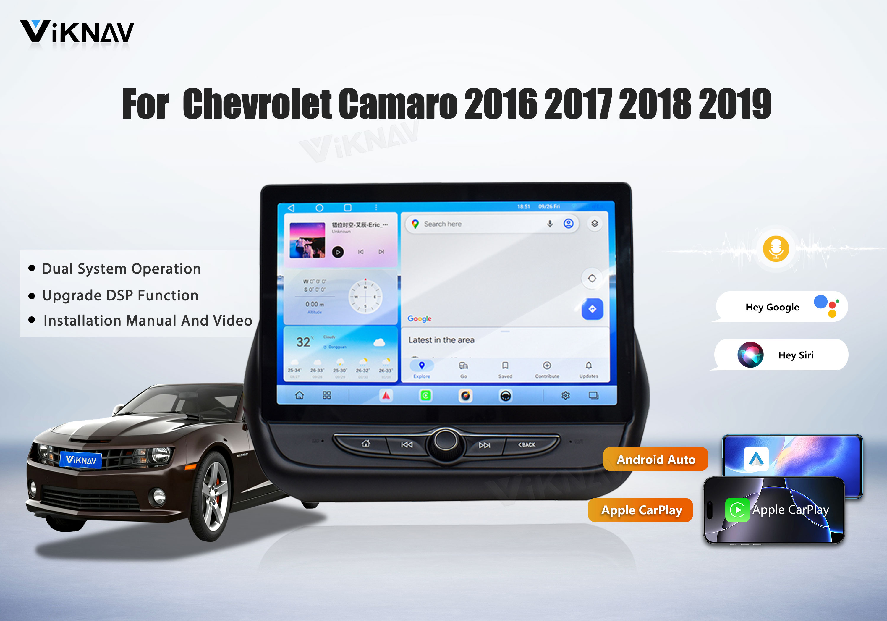 Precisely designed for Chevrolet Camaro models 2016–2019. Direct plug-and-play installation, perfectly matching the original dashboard style.