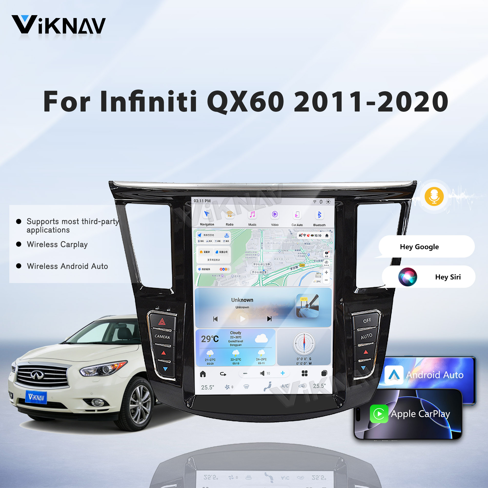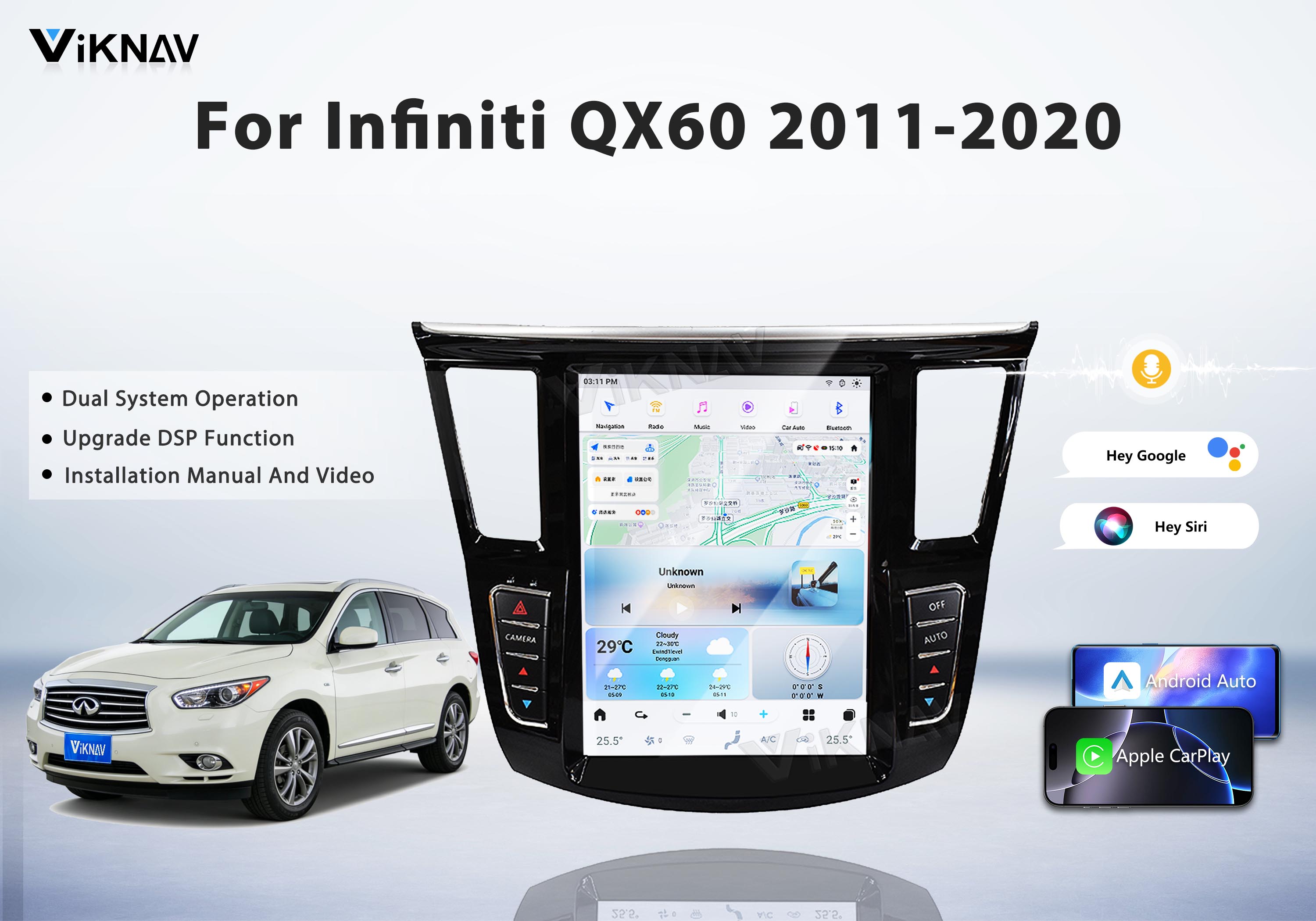Viknav 12.3 Inch Car Radio For Infiniti QX60 JX35 2011-2020 Multimedia Player GPS Carplay 4G WIFI Head Unit Stereo Receiver(128GB)