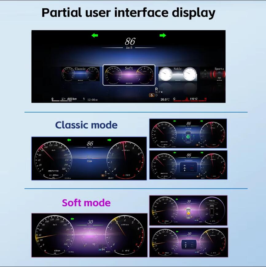 🚗Our upgrade digital cluster retain all the original car cluster data and functions.Three driving themes to switch and supports a variety of commonly used languages to meet the diversified needs of different users and easily cross the language barrier.