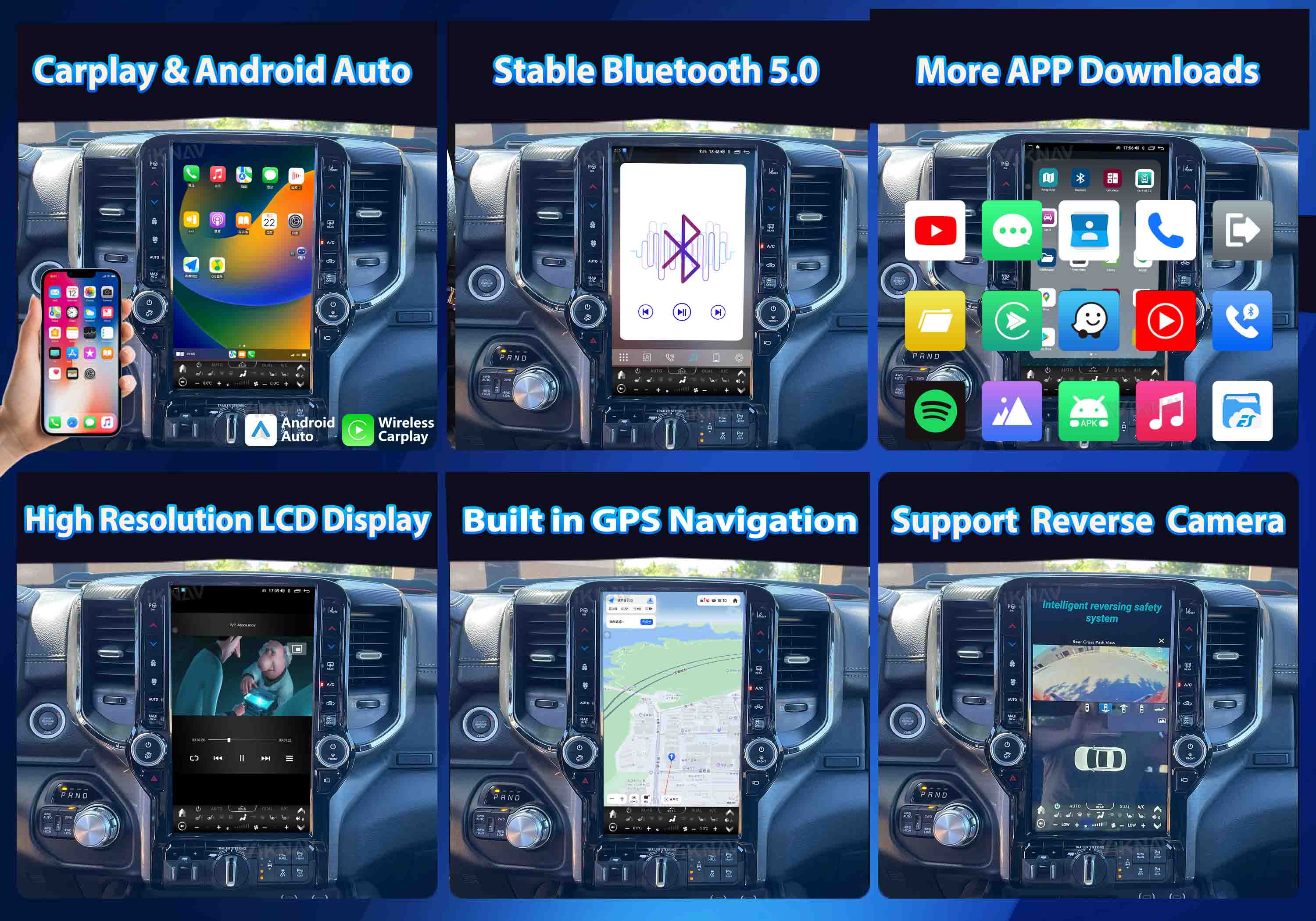 Camera: Supports OEM 360 Camera and includes an AHD backup camera with night vision and dynamic guidelines.