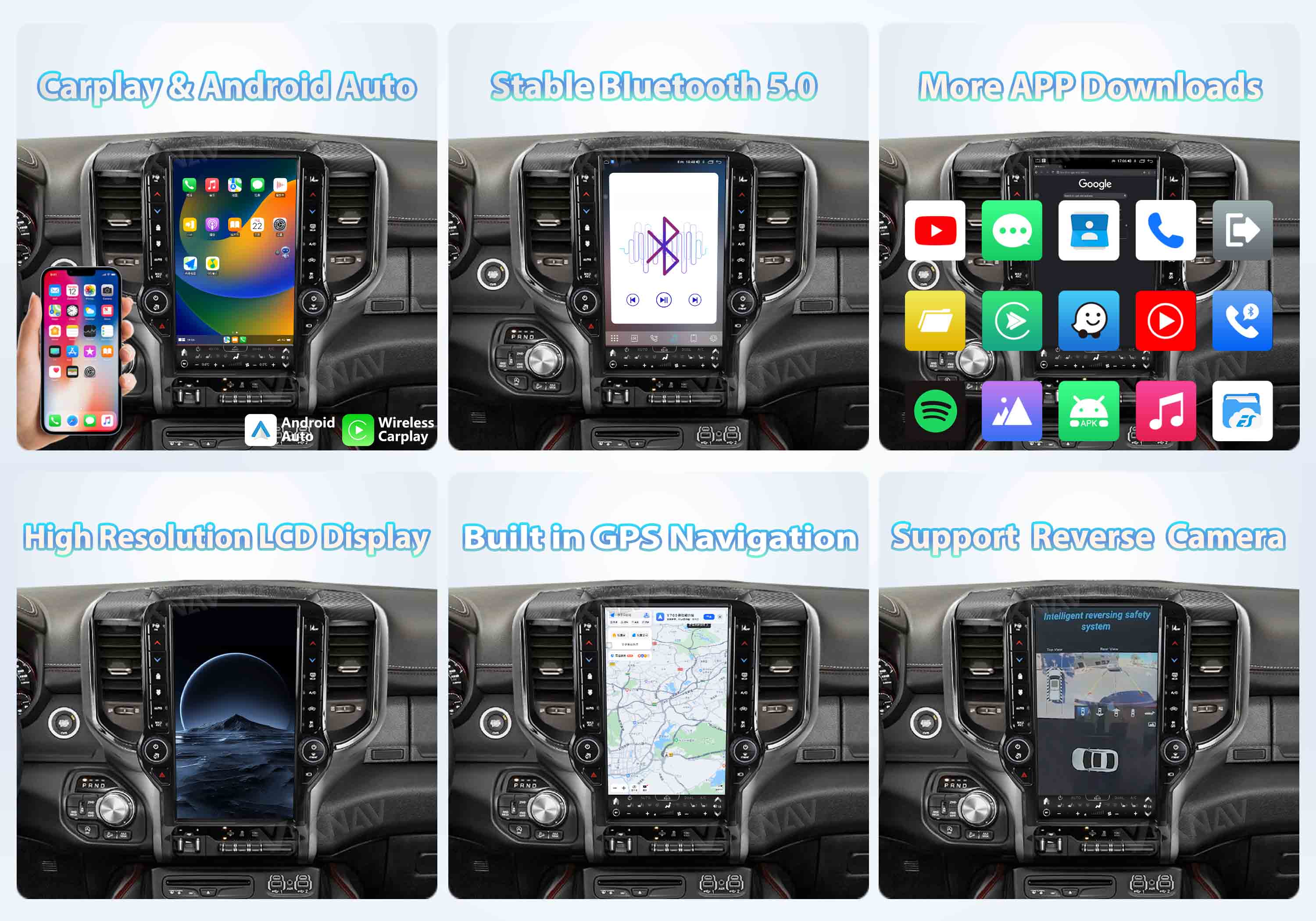 Seamless 13.6″ HD IPS Touchscreen – Ultra-clear 1920x1200 display perfectly integrated into your Ram’s dash.