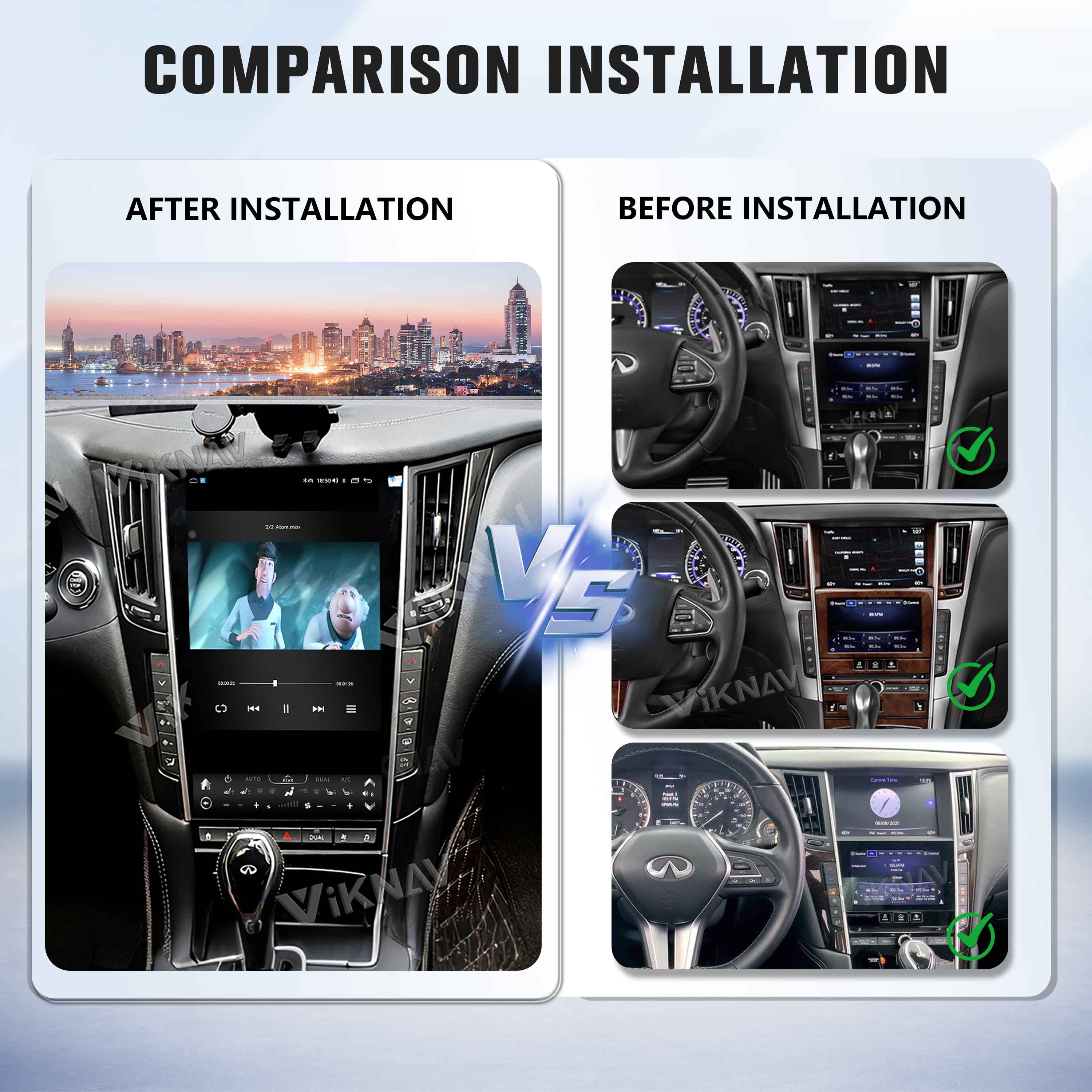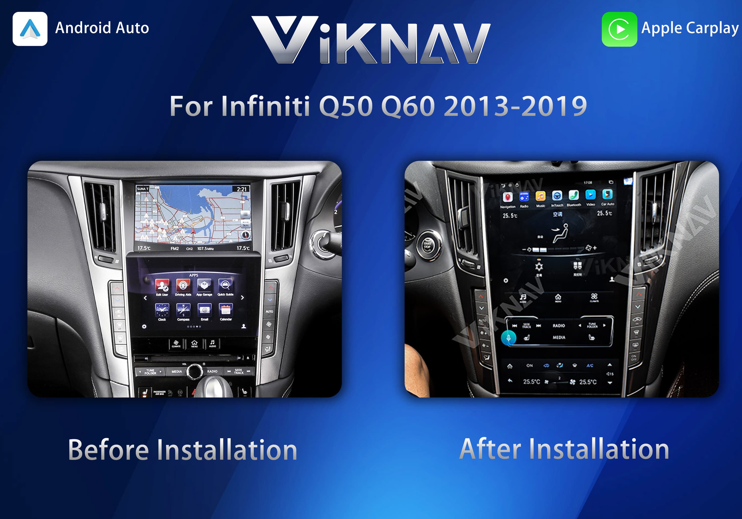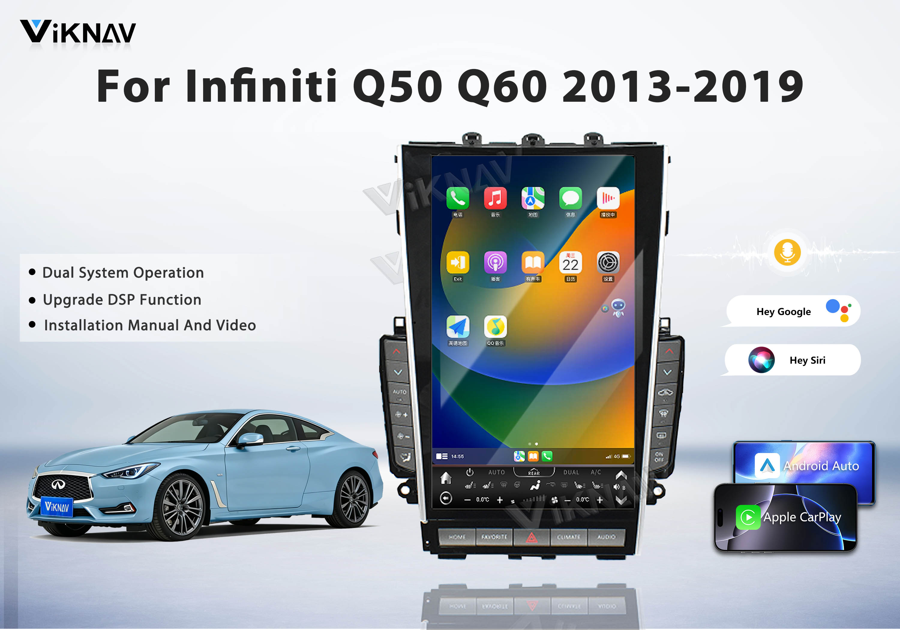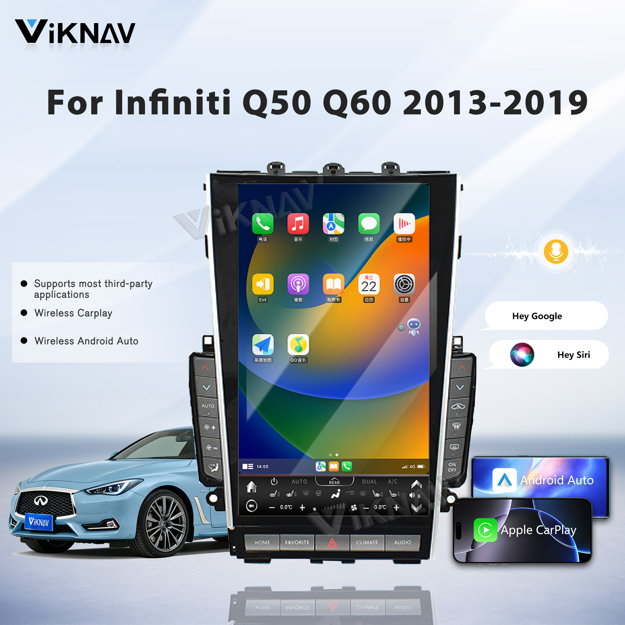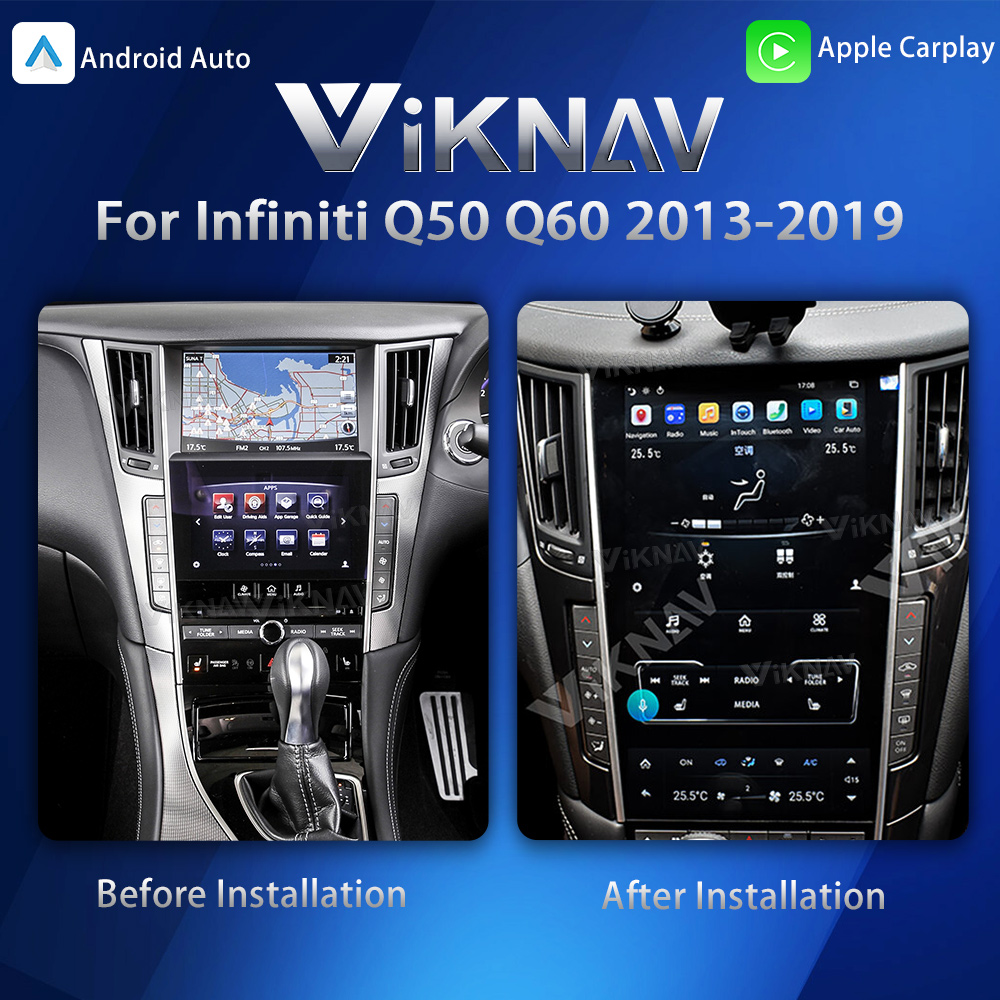 Viknav Tesla Style Android 13.6inch Radio for Infiniti Q50 Q60 2013-2019 Wireless CarPlay Android Auto & GPS Navigation