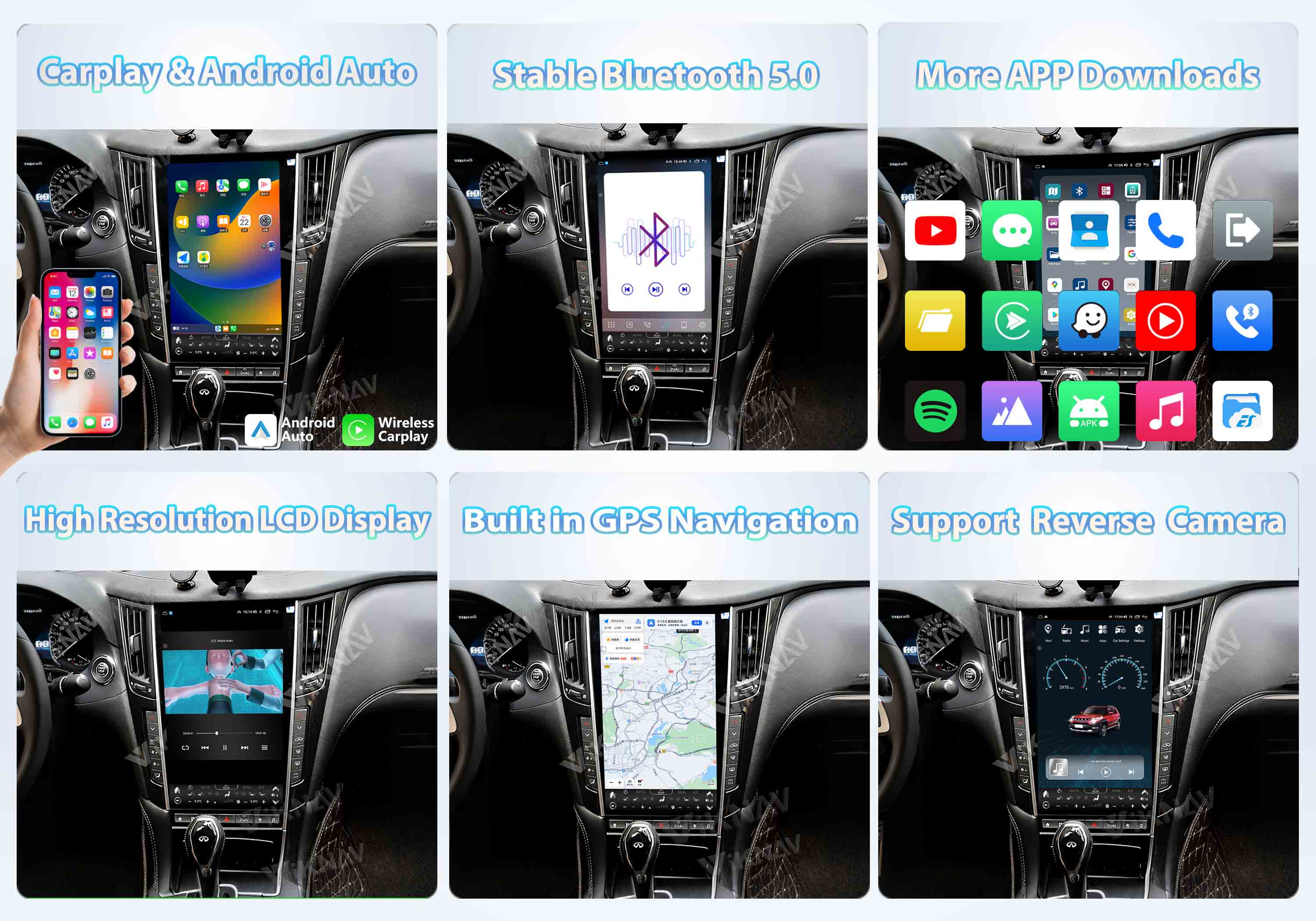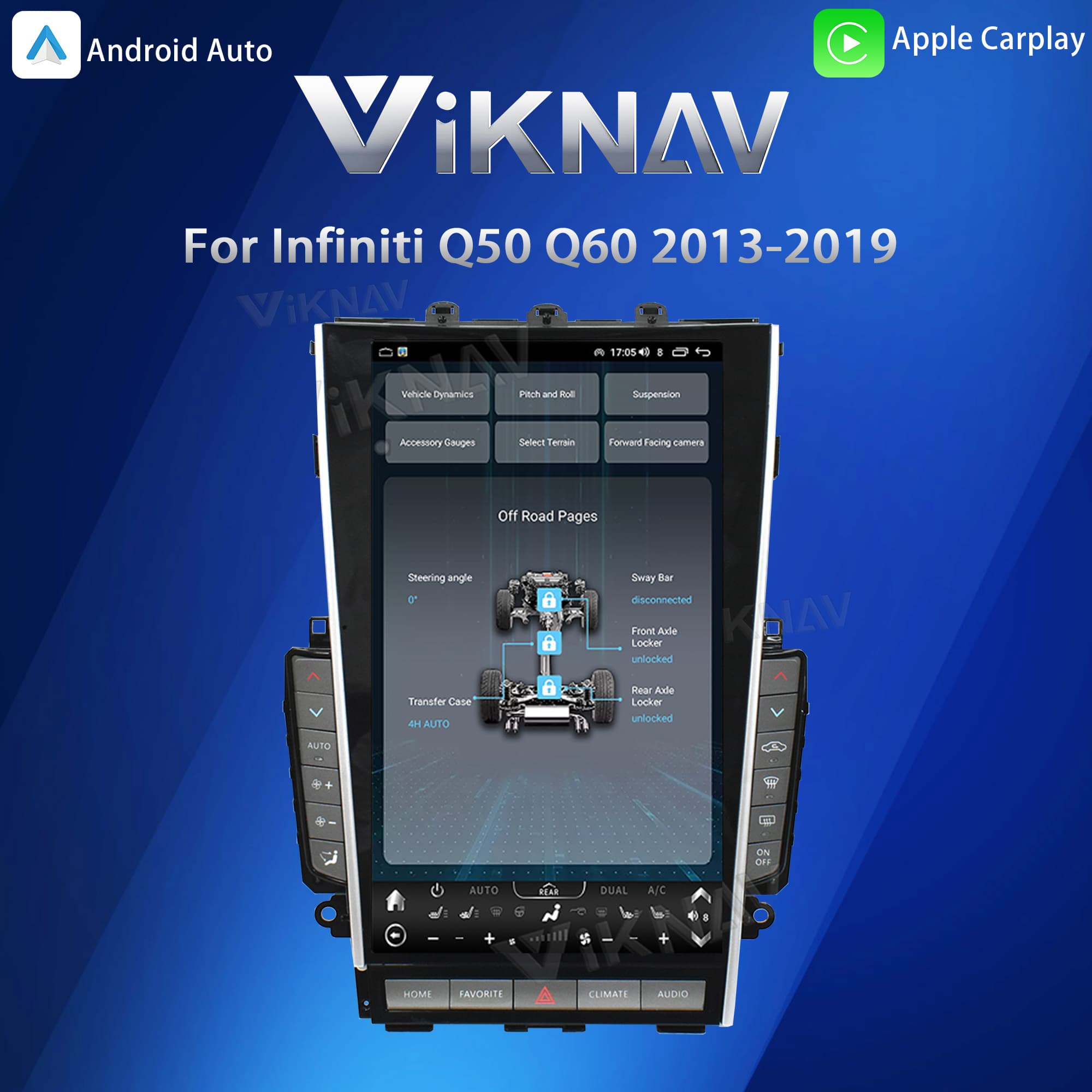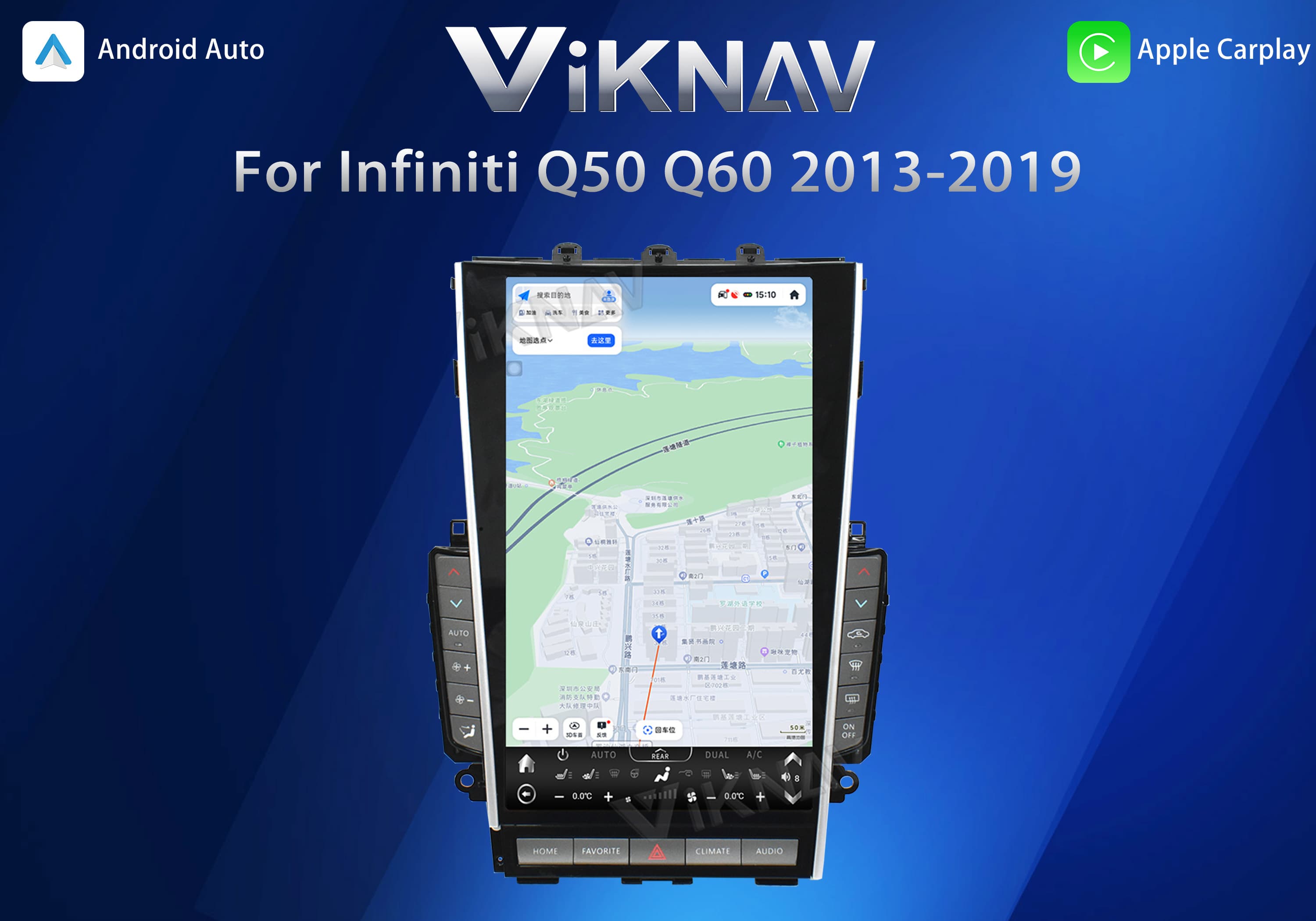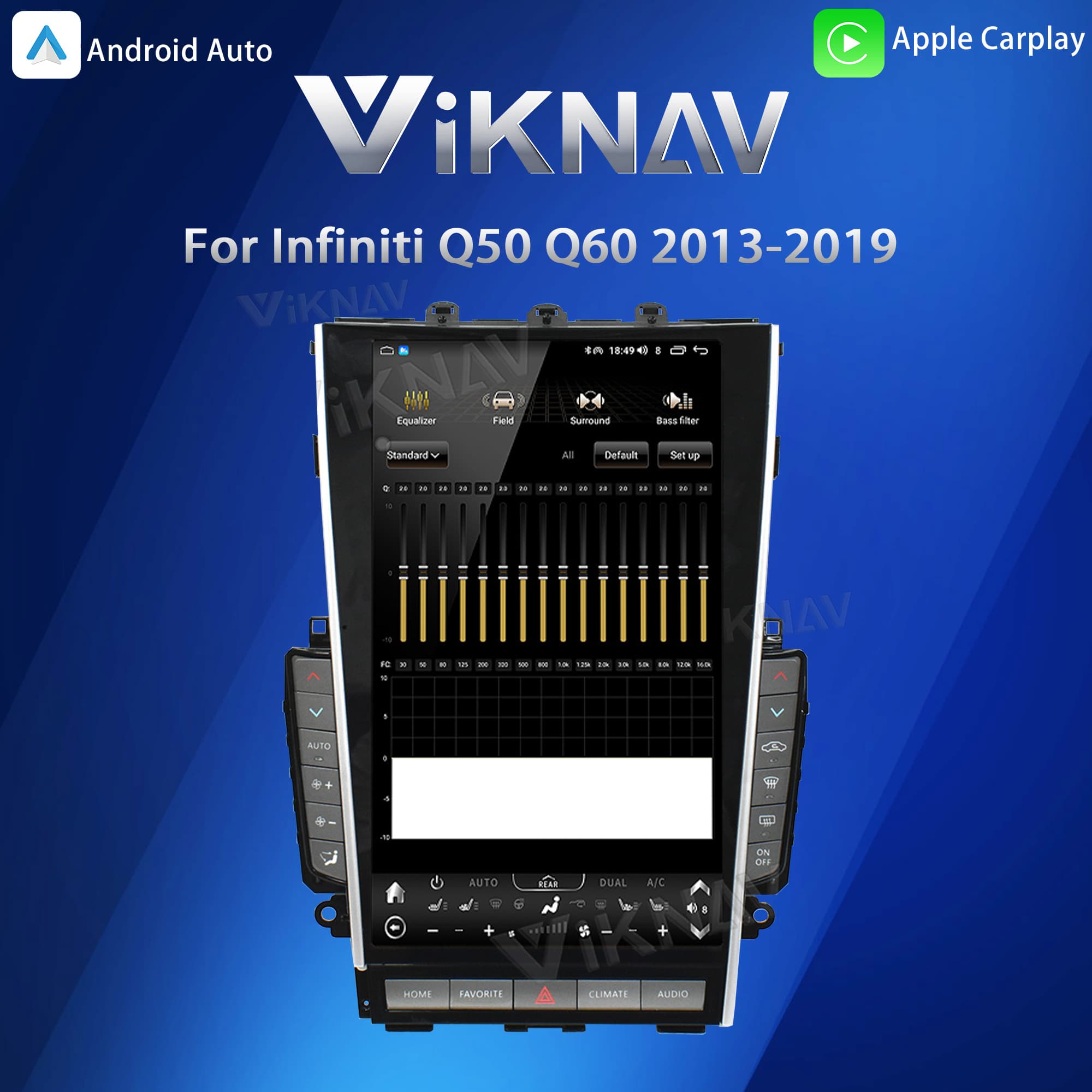 Viknav Tesla Style Android 13.6inch Radio for Infiniti Q50 Q60 2013-2019 Wireless CarPlay Android Auto & GPS Navigation